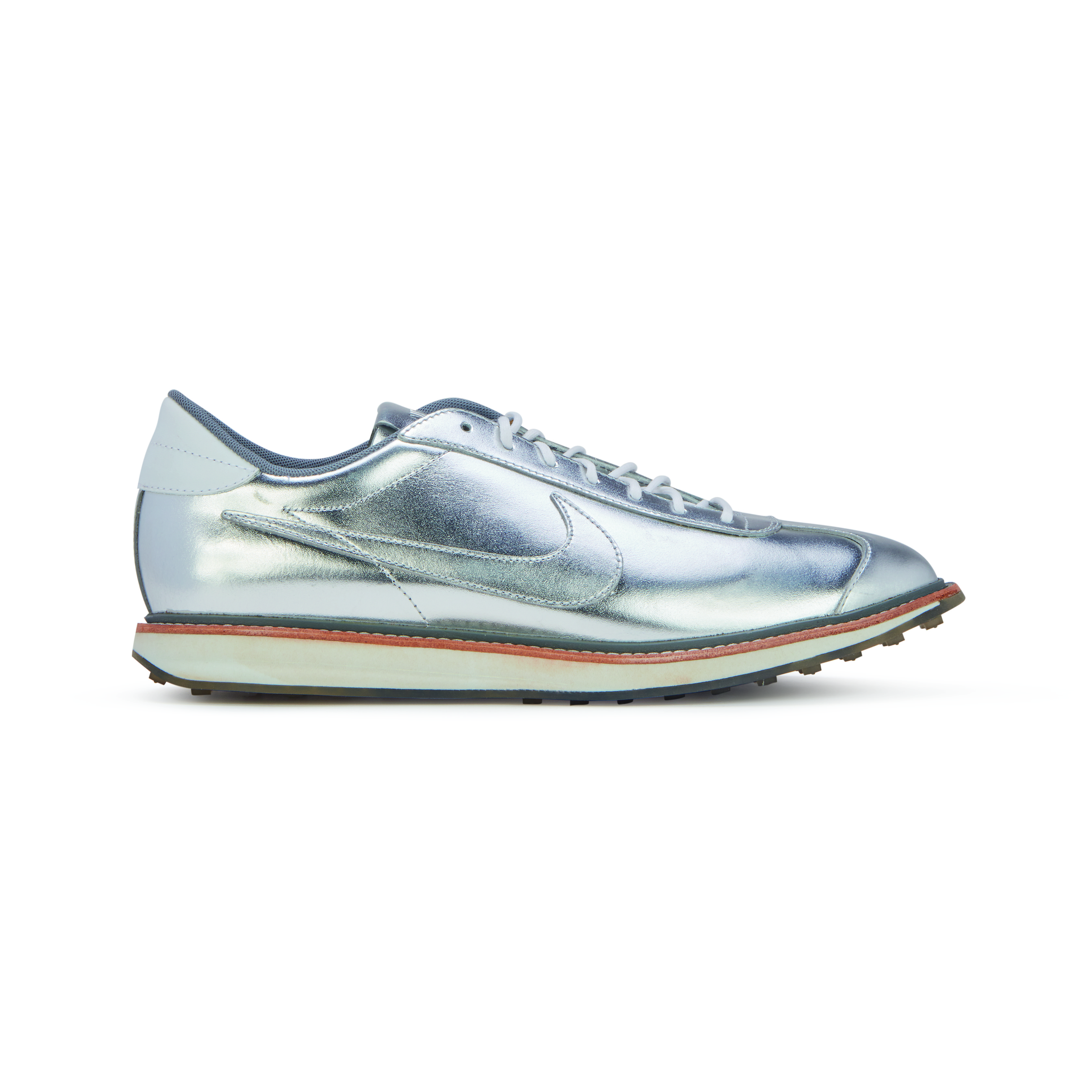 One of three sneaker styles created in celebration of the 47th Super Bowl for the Super Bowl Trophy pack. This extremely rare and limited Quickstrike release was designed after the legendary ‘Moon Shoe’ of 1972; the first Nike running shoe to feature the ground-breaking waffle sole technology.A 2013 Quickstrike update of the original Moon Shoe Waffle.Unique lowcut metallic silver build, inspired by the Vince Lombardi Super Bowl trophy.Two-tone Goodyear welted waffle sole.Tonal brown camo print under a clear Waffle outsole.Waxed laces.Style Number: 586367Color Code: 001This item is final sale and not eligible for return.