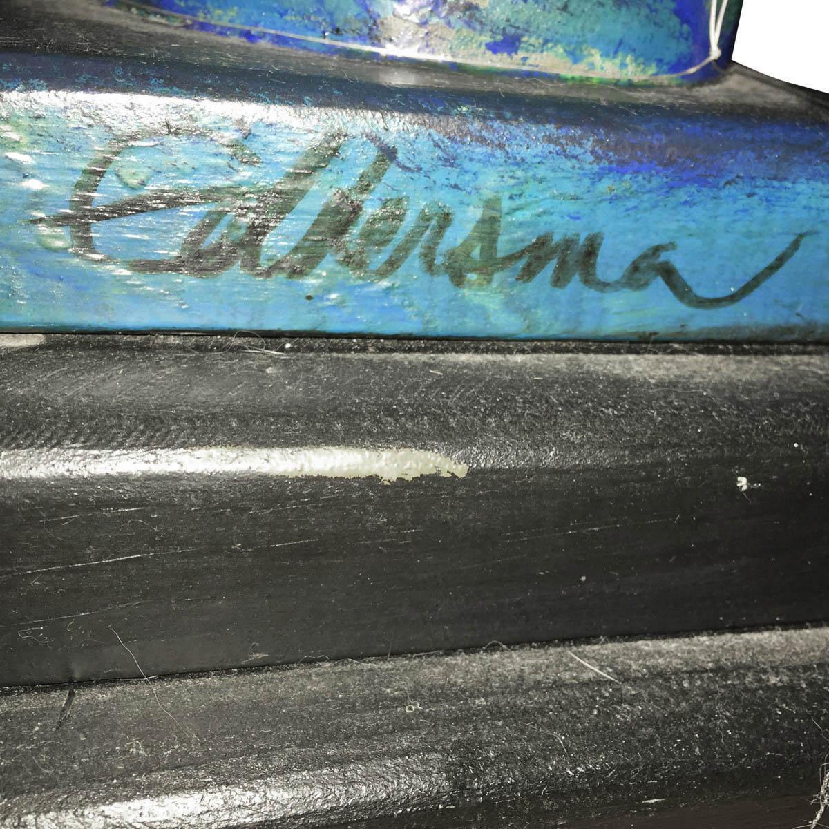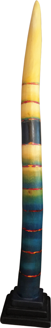 John Geldersma (American, b. 1943).Painted on hand-carved aspen pine from New Orleans by the artist and mounted to wooden base.The artist began carving totems in 1970 and has cited his early immersion in the intersection of such divergent cultures as French, Spanish, African-American, Caribbean, Anglo-Saxon and Native American as a major influence on his art.