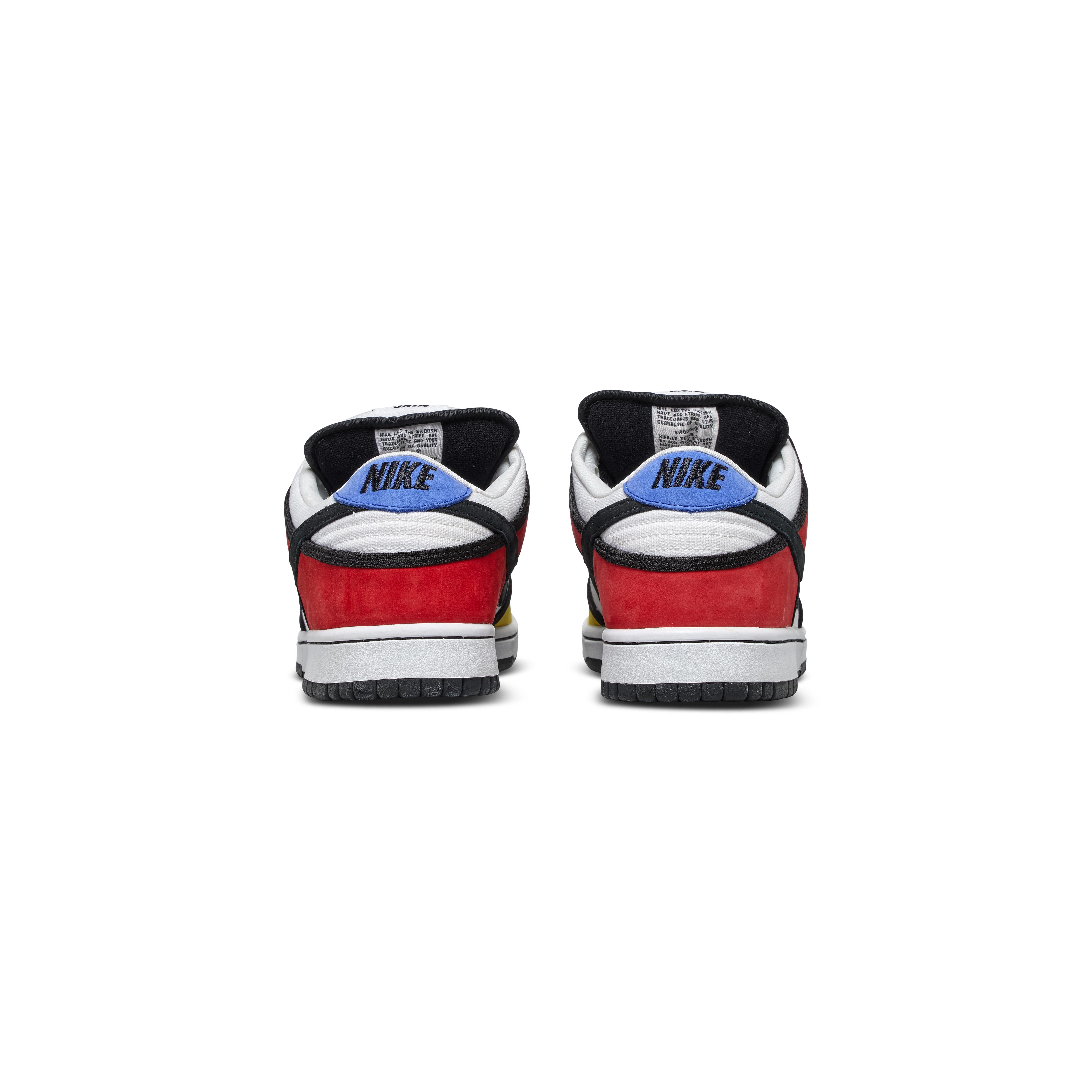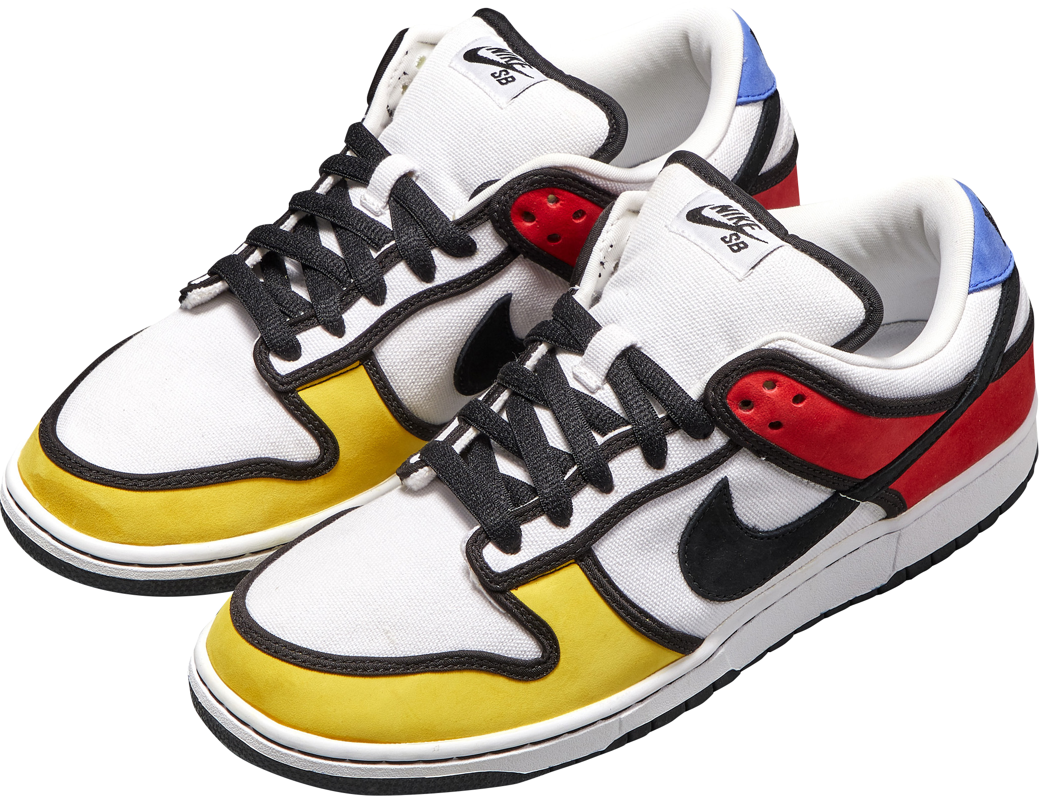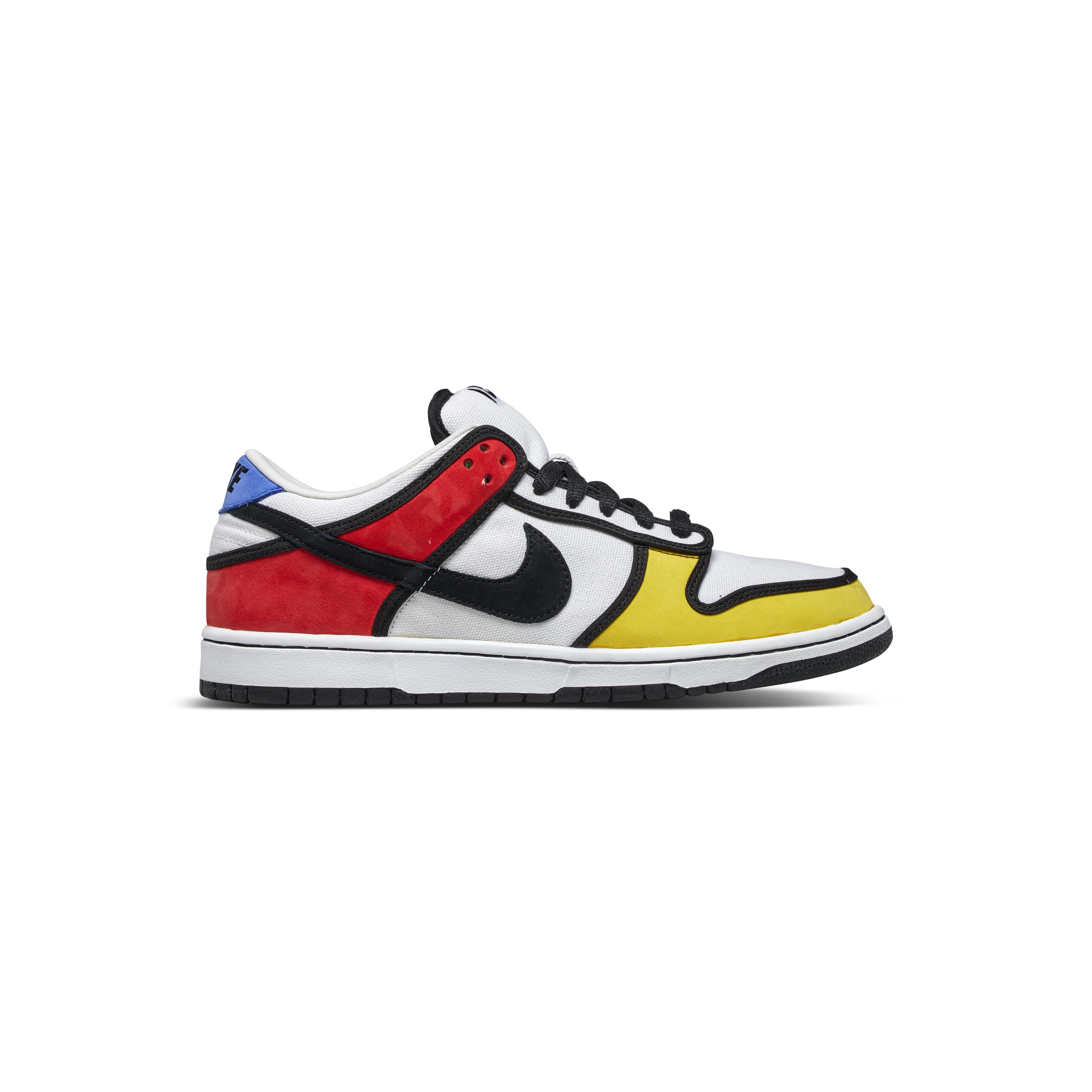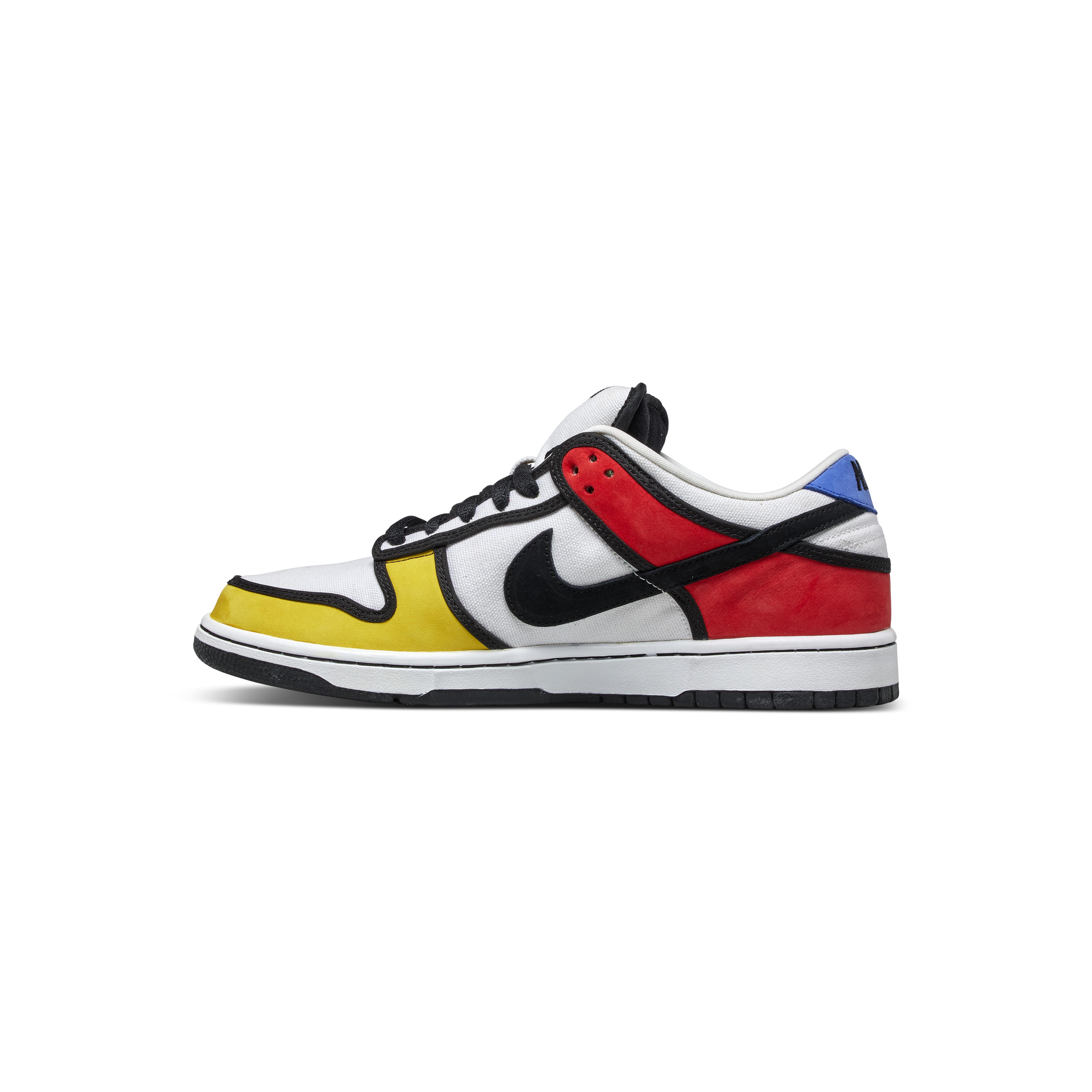 Modeled after the iconic abstract work of Dutch artist Piet Mondrian. Originally released in 1985 for basketball, Dunks popularity with skateboarders led to the launch of the SB line in 2002, featuring additional padding and Zoom Air soles.Modern art inspired design with Mondrian’s signature primary colors and bold black lines. Suede black Swoosh, blue heel, red and yellow overlay on white canvas.Two sets of laces included.Style Number: 304292Color Code: 702This piece is final sale and not eligible for return.