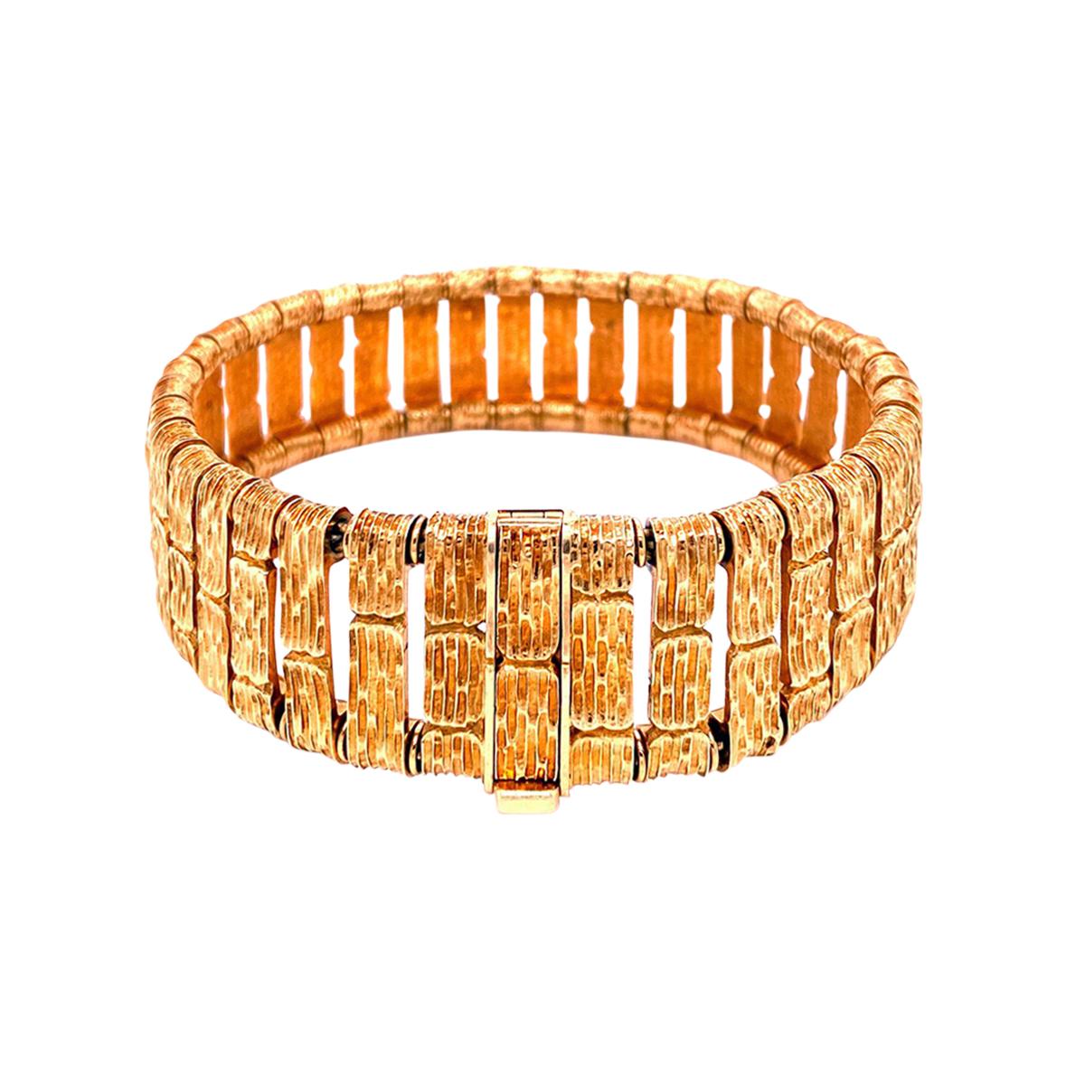 Composed of textured gold links.Width 3/4 inch, Depth 1/8 inch, Length 7 1/2 inches.Signed VCA; B 23334 with French assay and maker’s marks.18 karat yellow gold.Gross weight approximately 48.29 dwts.Circa 1960s.