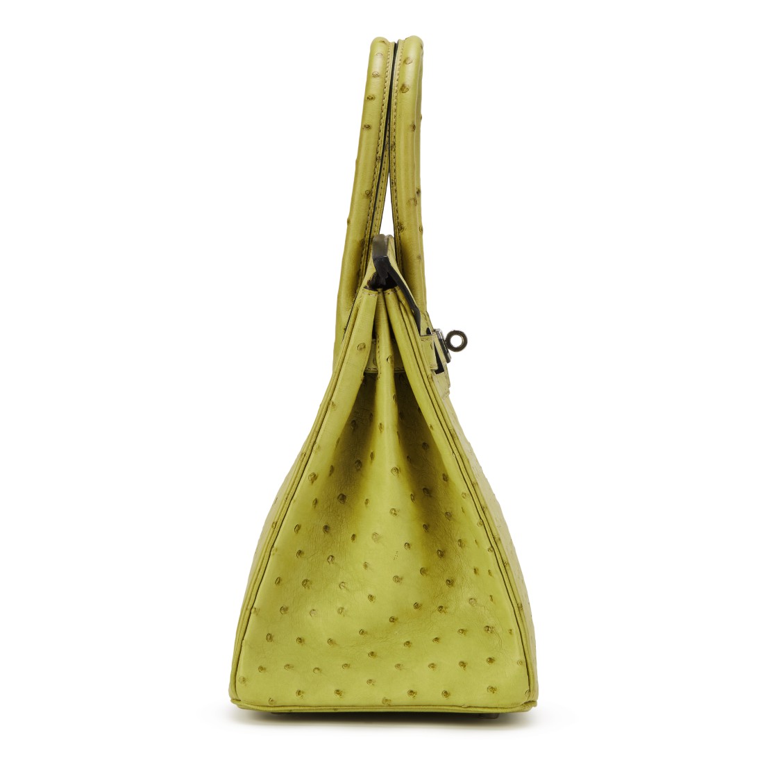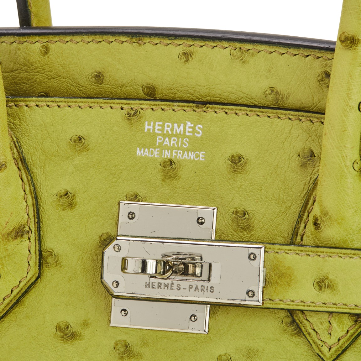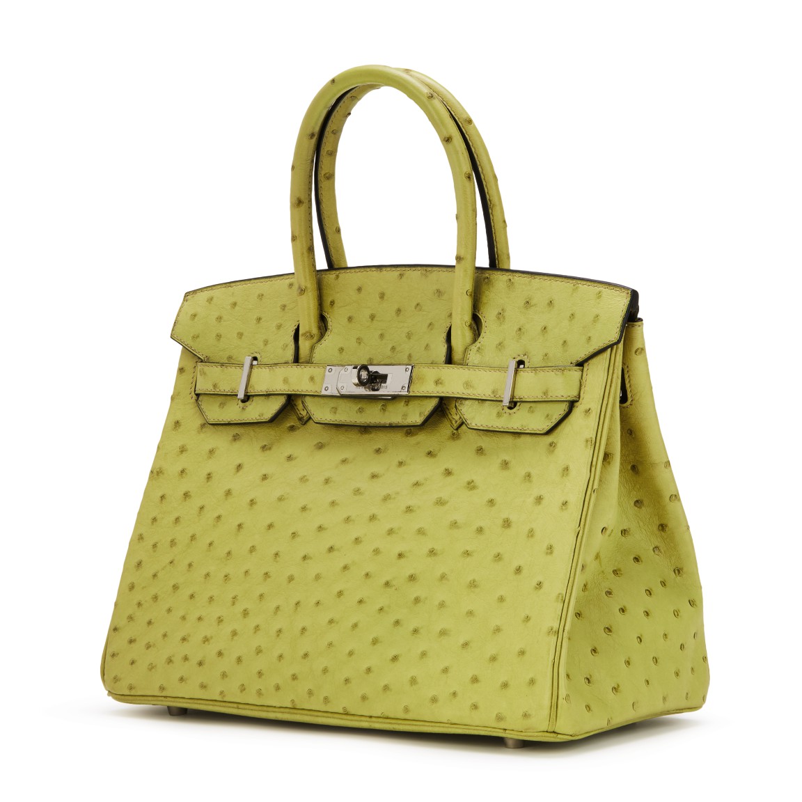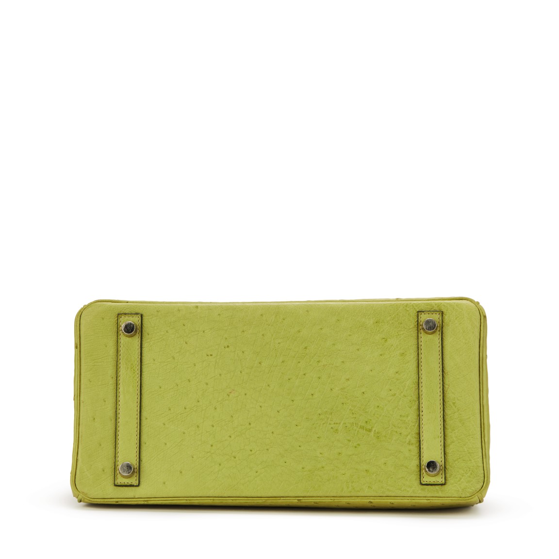 Hermès Vert Anis Birkin 30cm in Ostrich Leather with Palladium Hardware, 2002The interior is lined with green chèvre and features one zip pocket with an Hermès engraved pull and an open pocket on the opposite side.Includes box, dustbag, clochette, lock and keys.