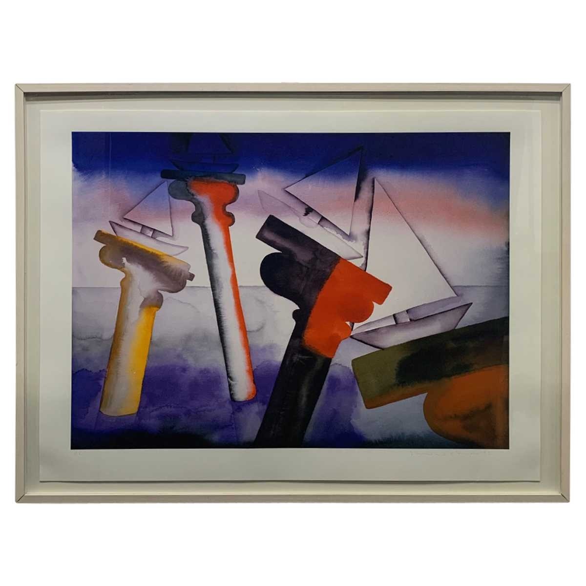From the Estate of Patrick McCarthy.Francesco Clemente (Italian, b. 1952).Digital print of a watercolor depicting boats.HC edition, inscribed lower left in pencil.Bleached wooden frame.Artwork floating in frame.Hangs with wire.