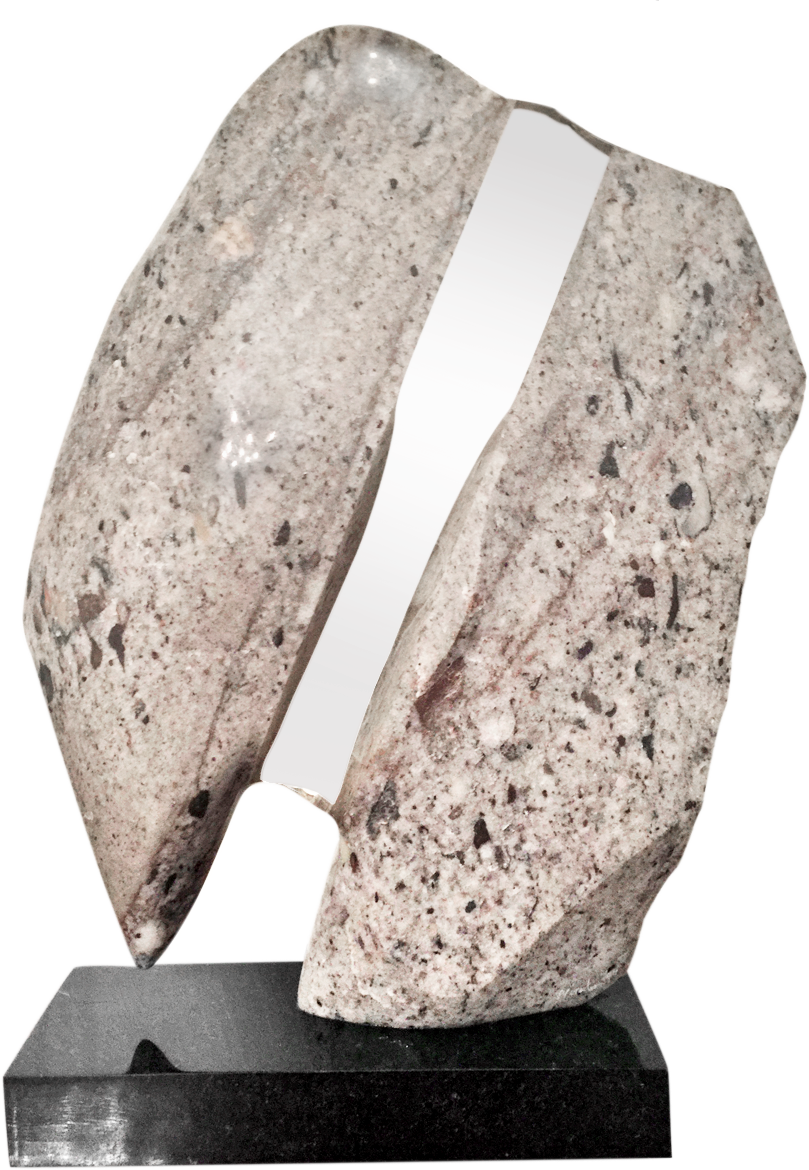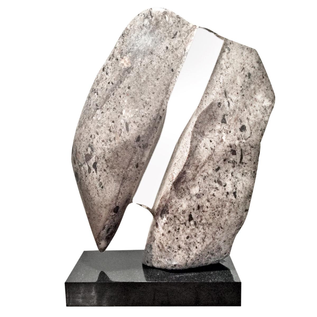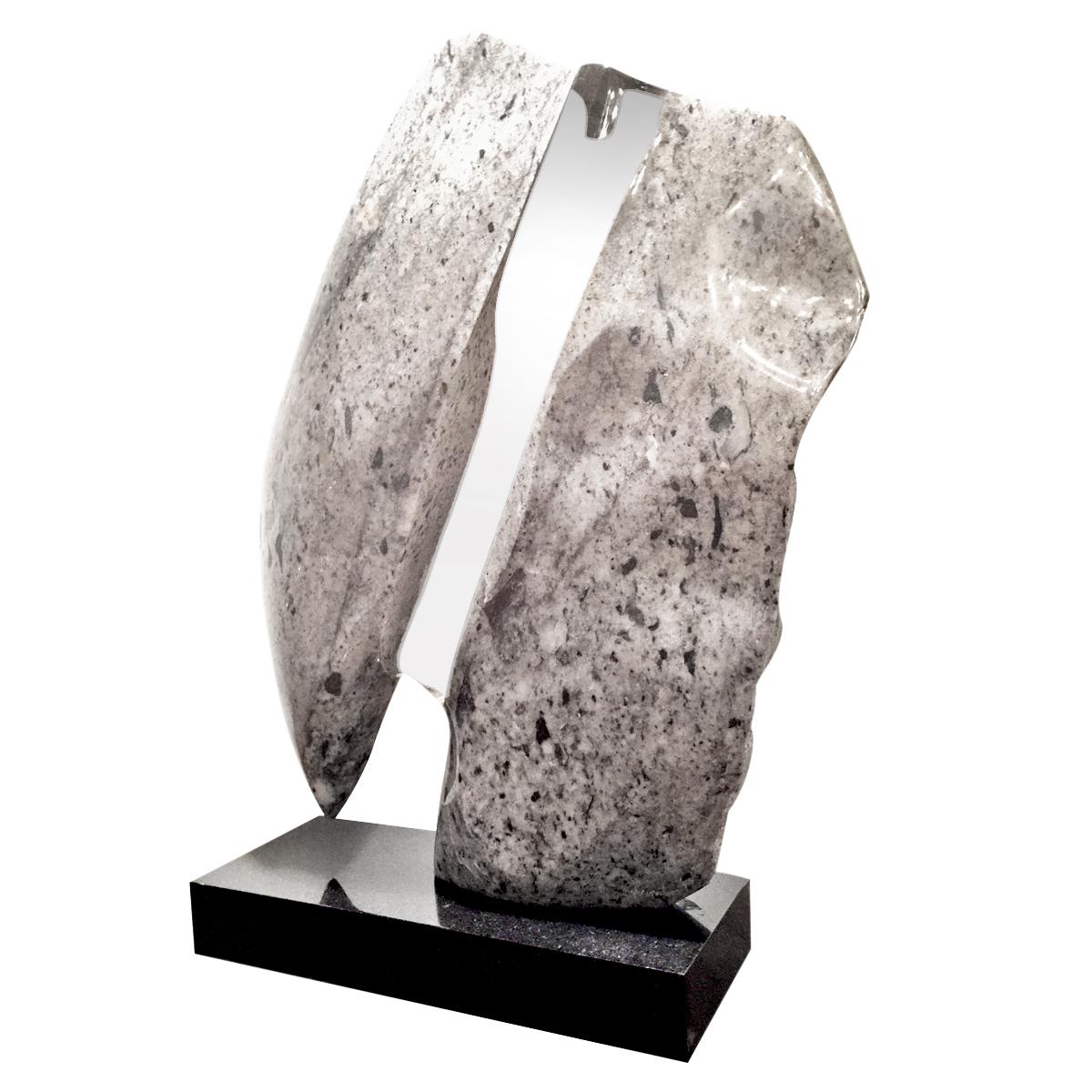 Robert Winslow (American, b. 1950).Modern sculpture of quartzite and optical glass on a black granite base.