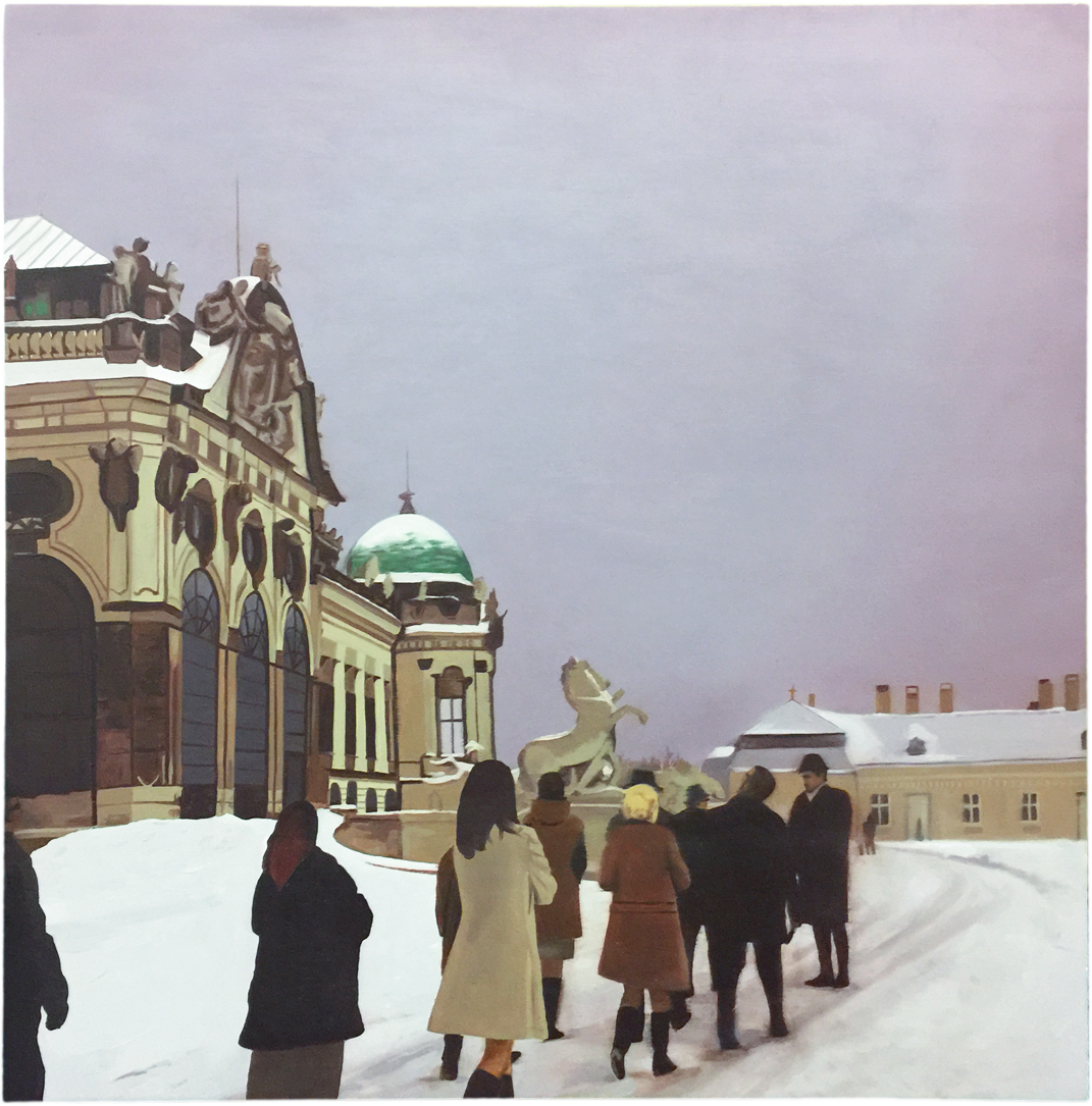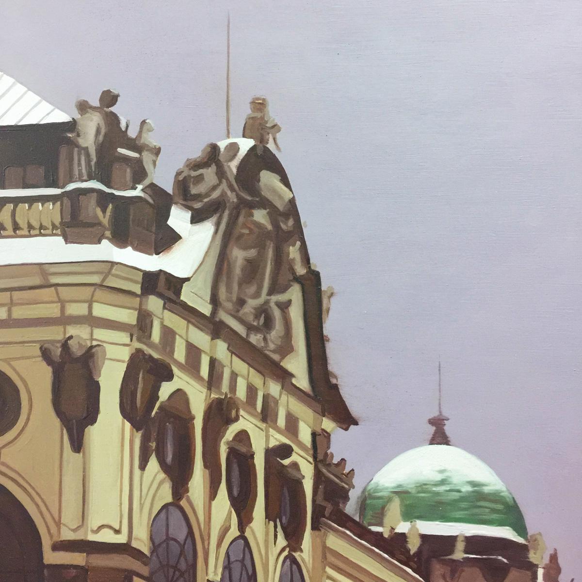 Lucy Beecher Nelson (American).Realistic painting of a square in Vienna, Austria, based off a Polaroid.