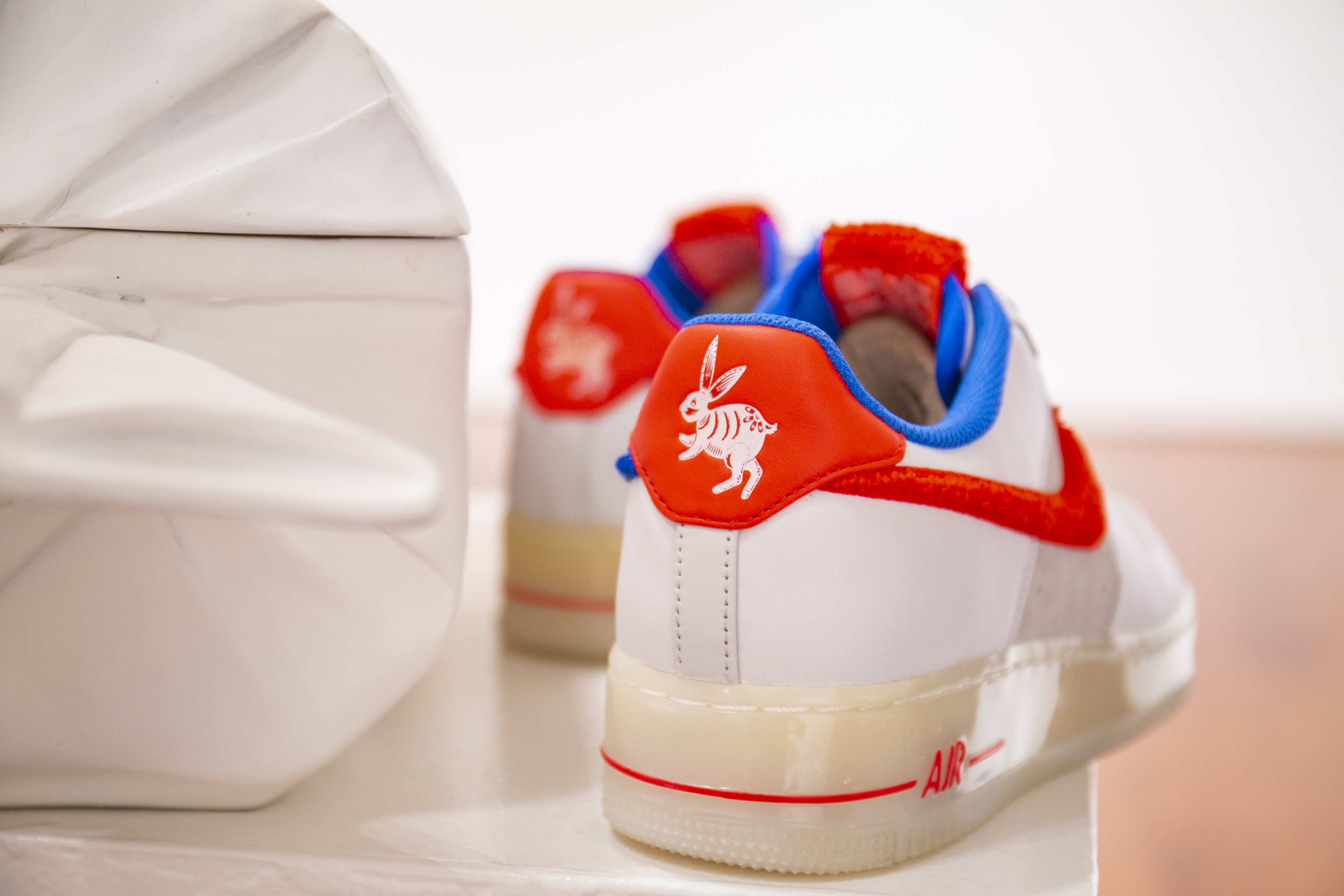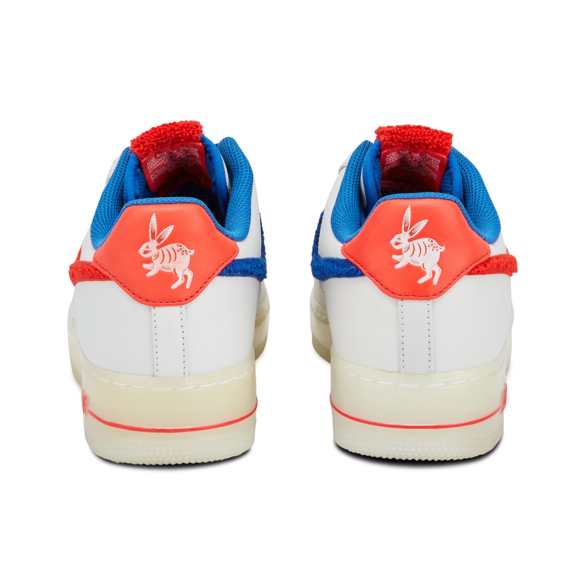 To celebrate the 2011 Lunar New Year, Nike released a Quickstrike Supreme Air Force 1 ‘Year of the Rabbit’ model, inspired by Shanghai's nostalgic 'White Rabbit' creamy candy and the Chinese Zodiac.The clean build features premium white leather uppers, platinum suede panels and a milky white midsole. Pops of color include vibrant red and royal blue mismatched Swooshes, blue laces, blue ‘2011’ deubrés. The Chinese character for rabbit features on the red tongue tag. The shoes come packaged in a special container molded to look exactly like the White Rabbit candy on which this release is based. Originally released in 1982, the Air Force 1 is named after the presidential aircraft. Designed by Bruce Kilgore, it was the first basketball shoe to feature revolutionary air pocket technology. Today it is one of Nike’s most iconic, best selling sneakers.A pair of rare Quickstrike 'Year of the Rabbit' Air Force 1s with the China-exclusive White Rabbit Candy box.The shoe design is a tribute to the Chinese Zodiac and celebration of the 2011 Lunar New Year.White leather uppers and platinum suede panels with vibrant red and royal blue details throughout.Mismatched red and blue chenille Swooshes, and red chenille tongue tags.Rabbit motifs are featured on the heel tabs and the two-tone patterned insole graphics.The Chinese character for 'Rabbit' is embroidered on the tongue tag.Limited-edition collector's box is molded to look like Shanghai's iconic White Rabbit Candy.Style Number: 318988Color Code: 100This item is final sale and not eligible for return.