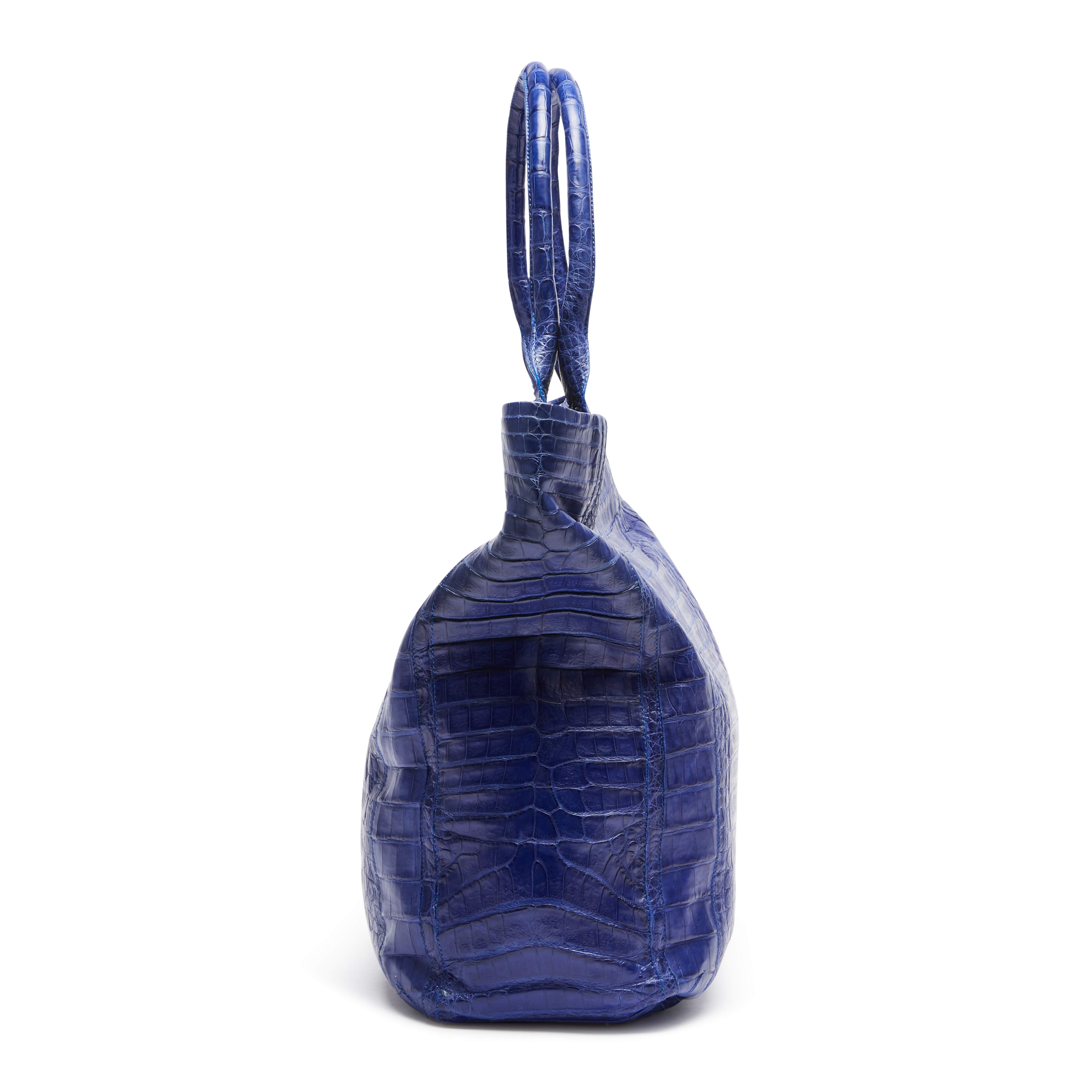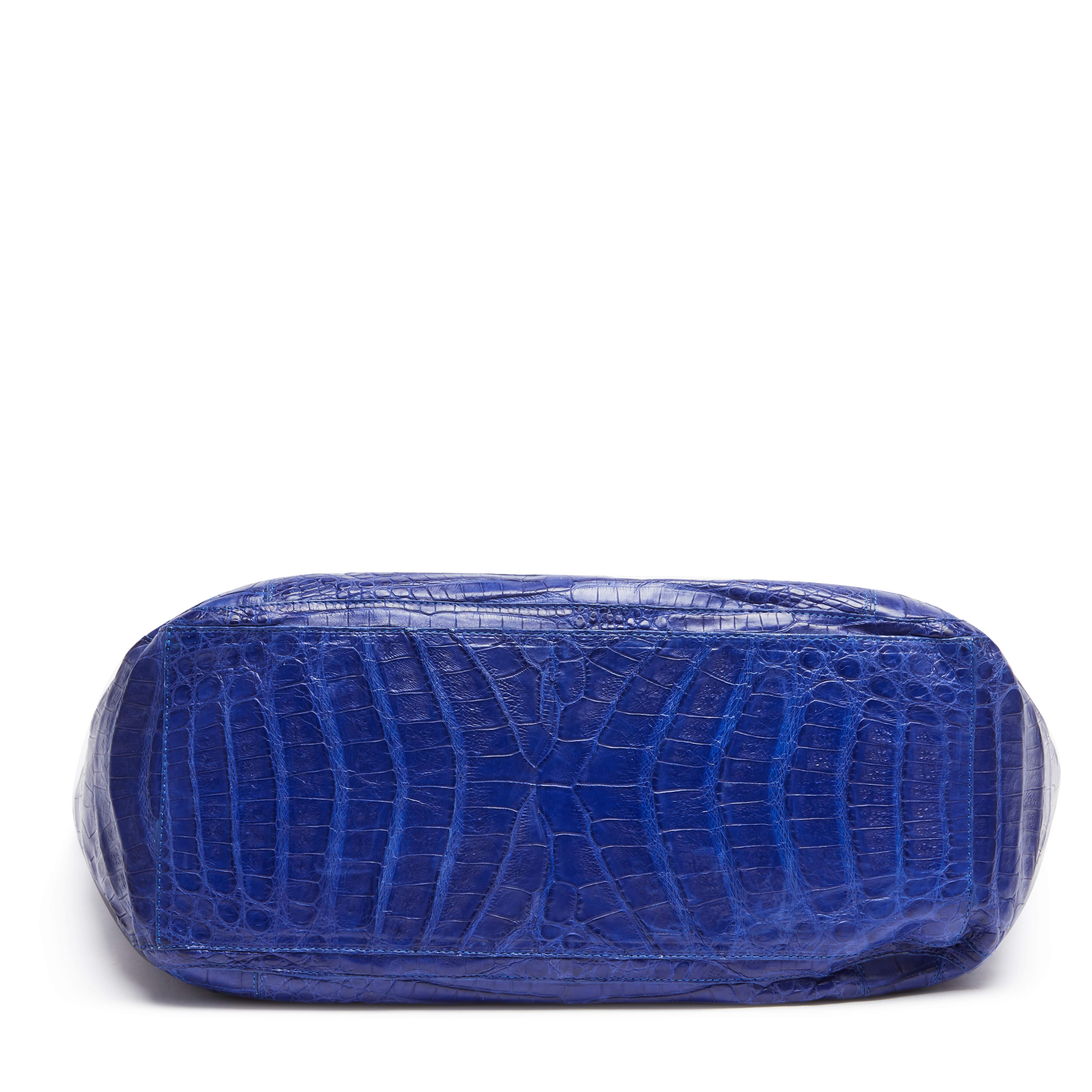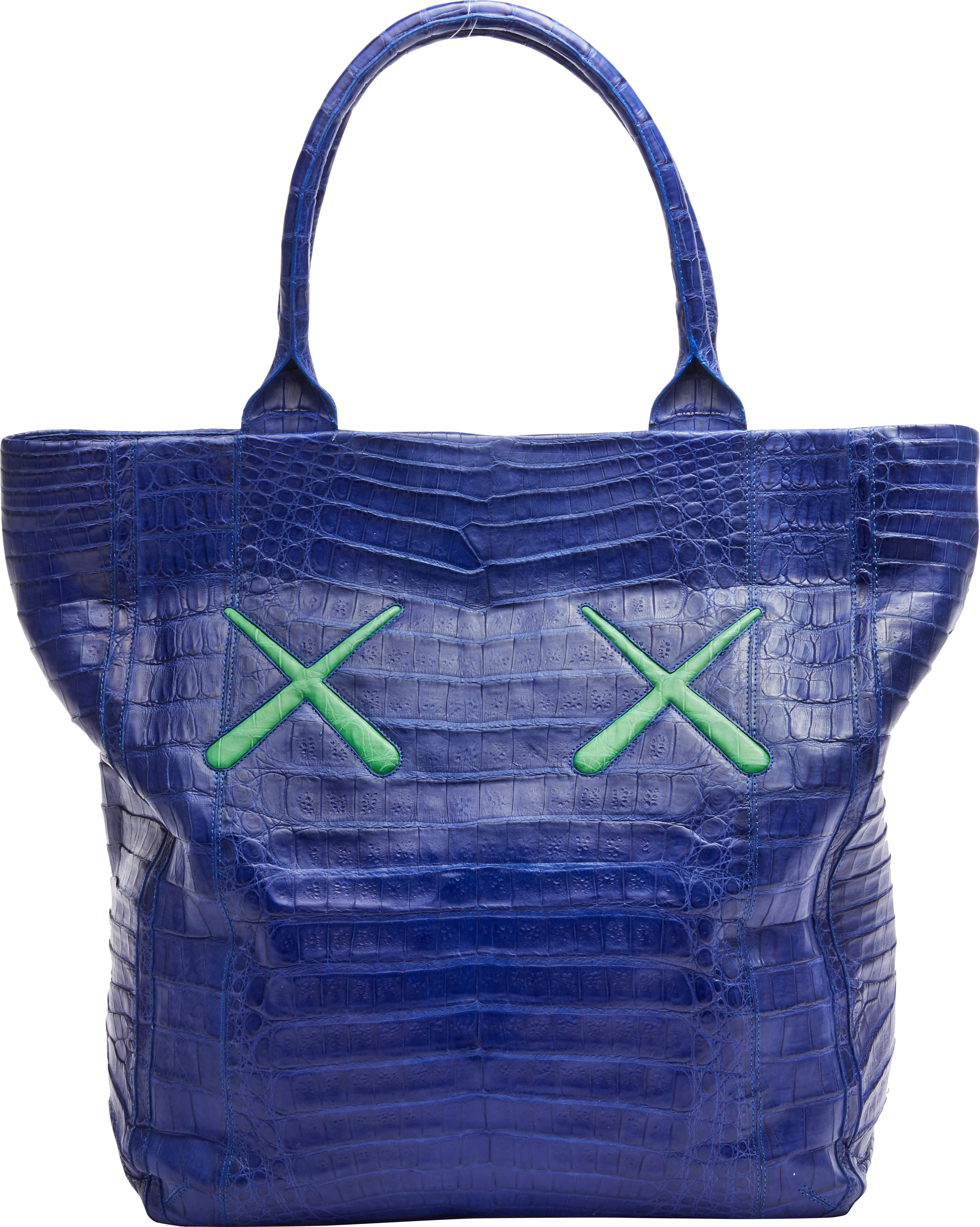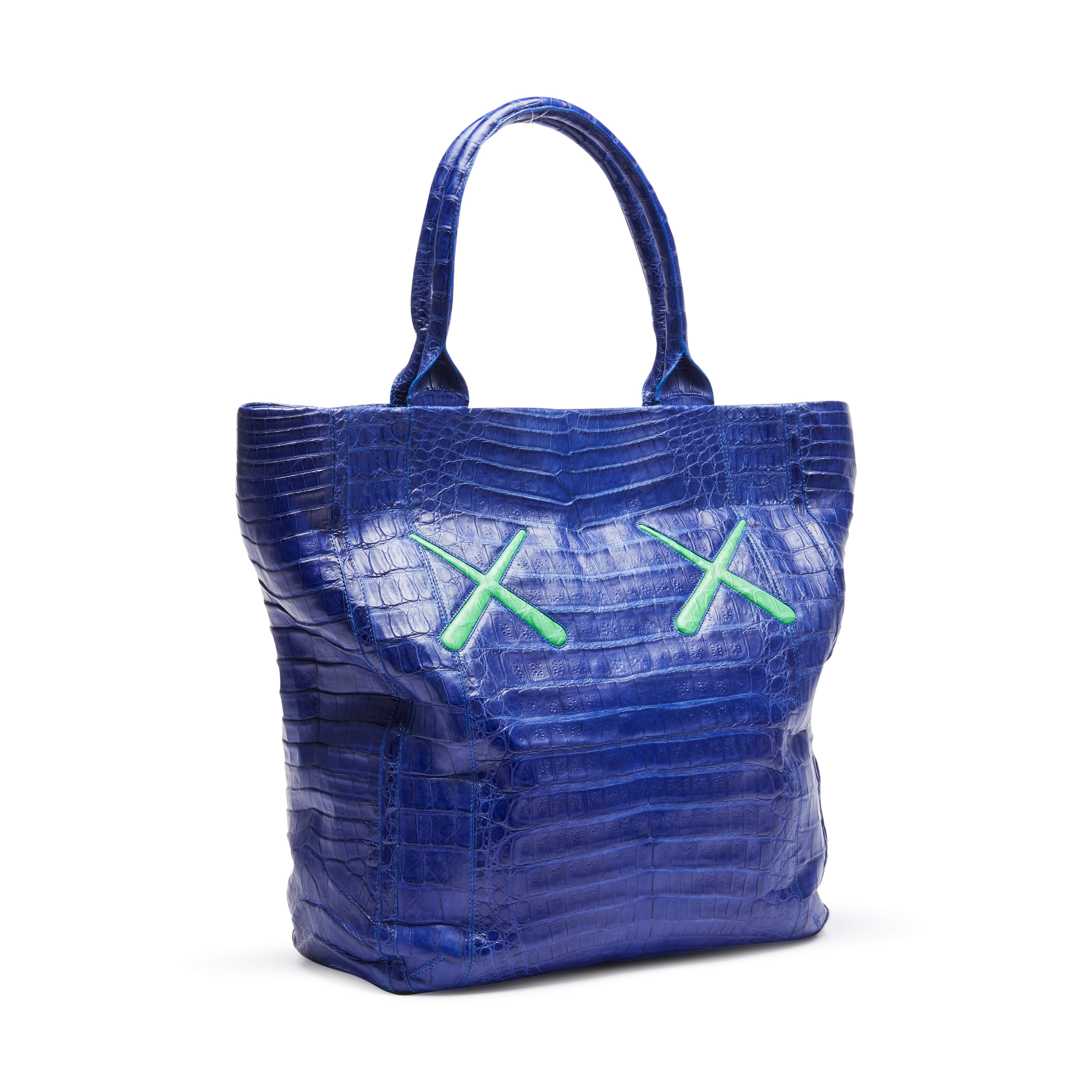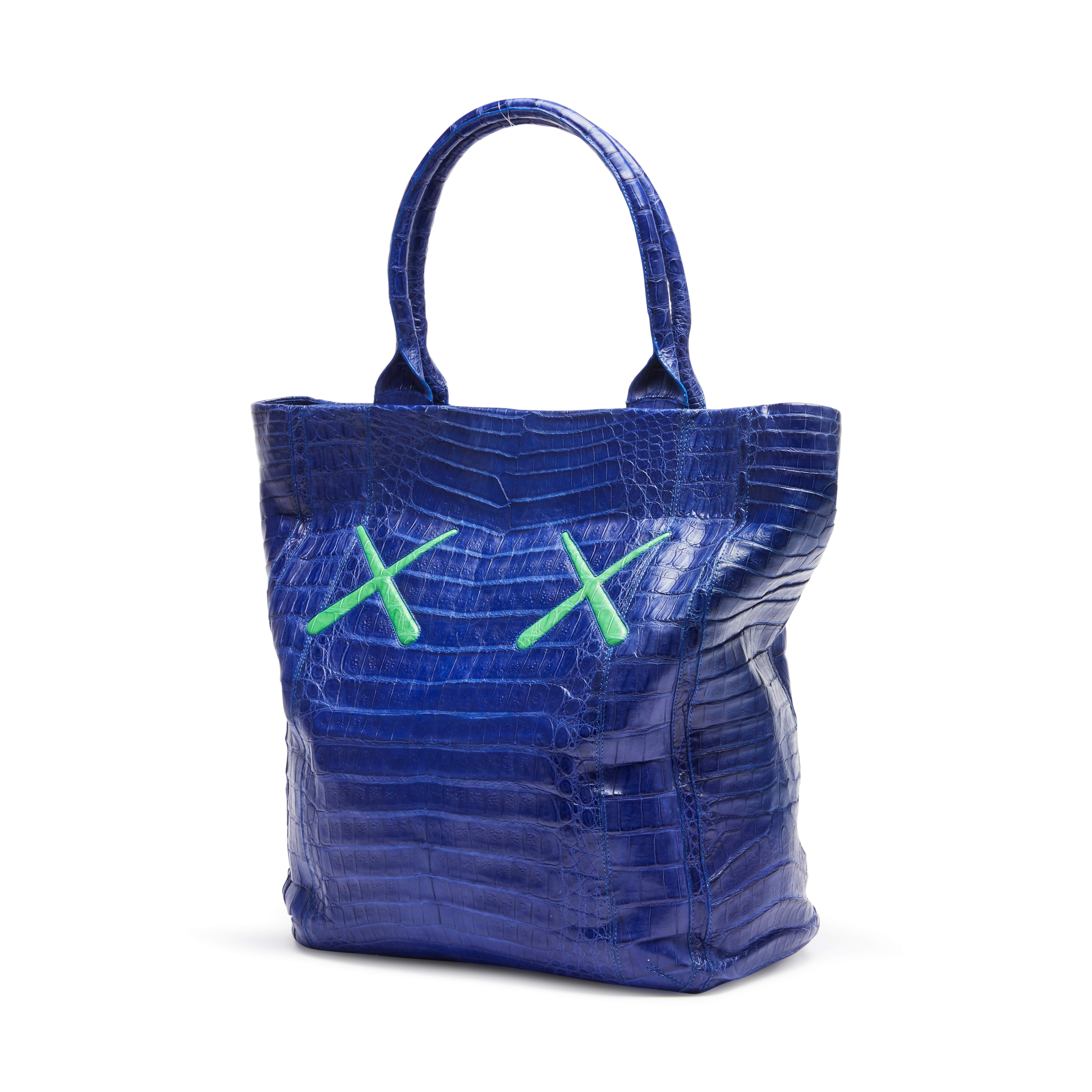 Nancy Gonzalez X KAWS Cobalt Blue with Green XX Leaf Tote in Crocodile Leather, 2016Signature Caiman crocodile tote with X details.Open top with magnetic closure.Interior with suede lining, zip and open pockets.Limited Edition.Includes dustbag and box.