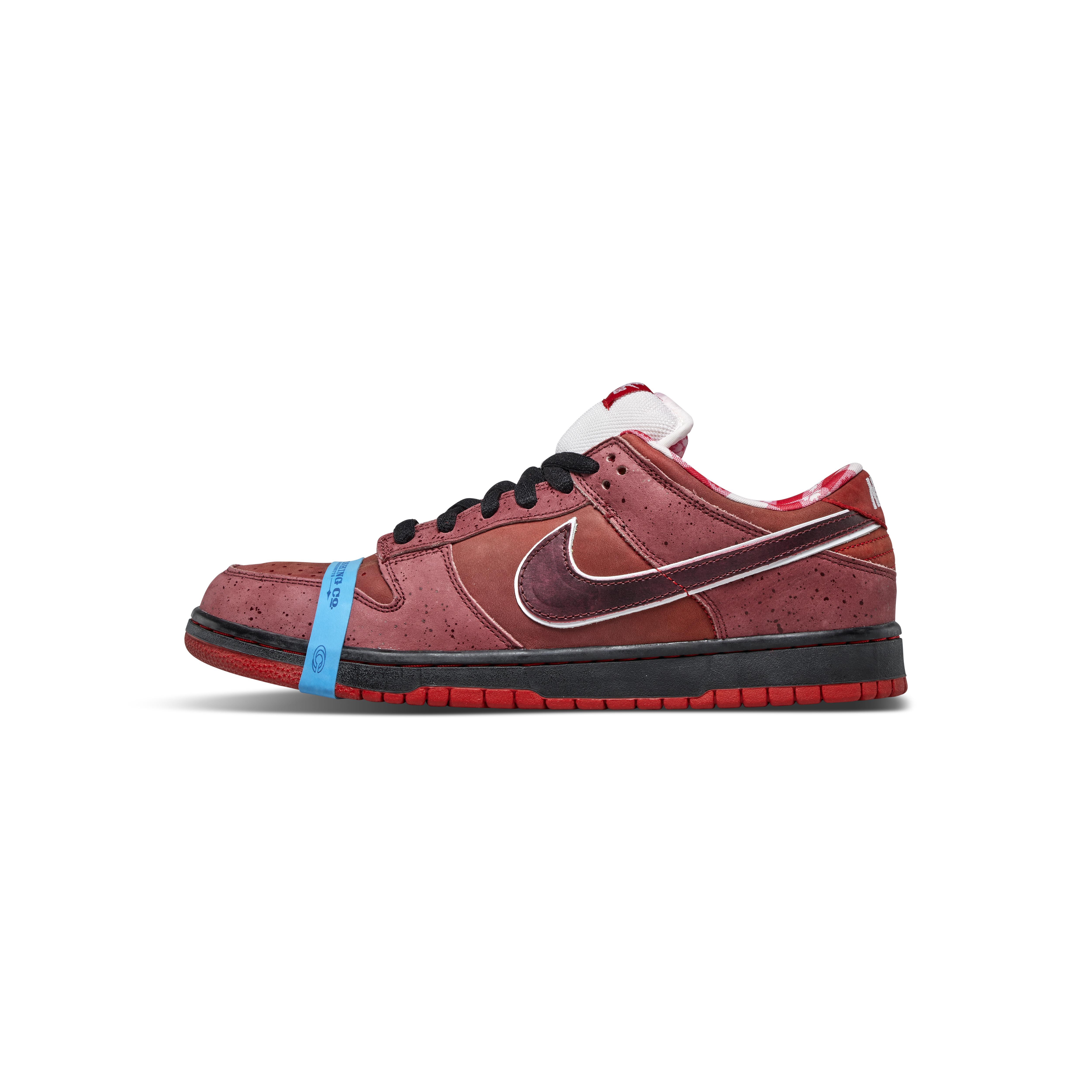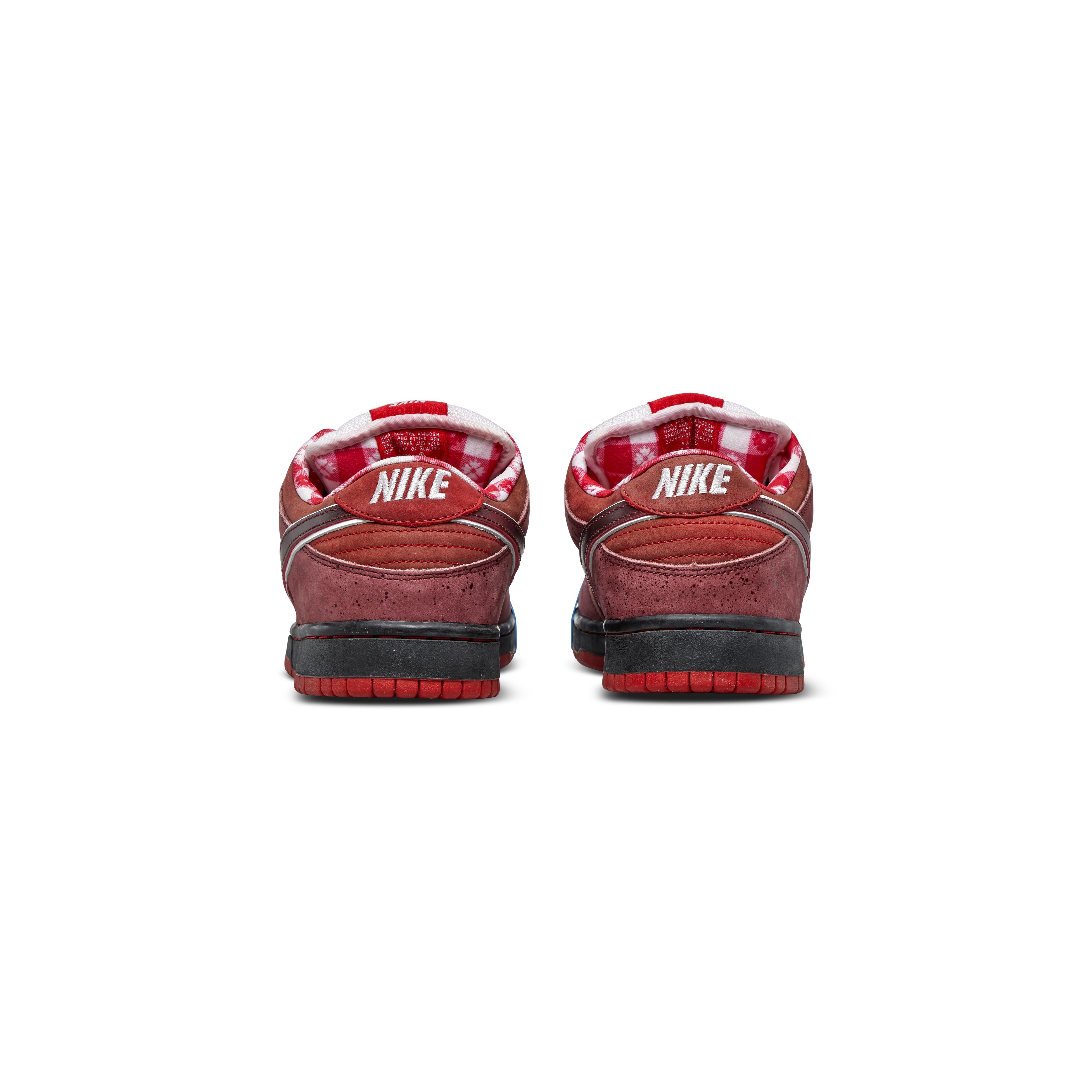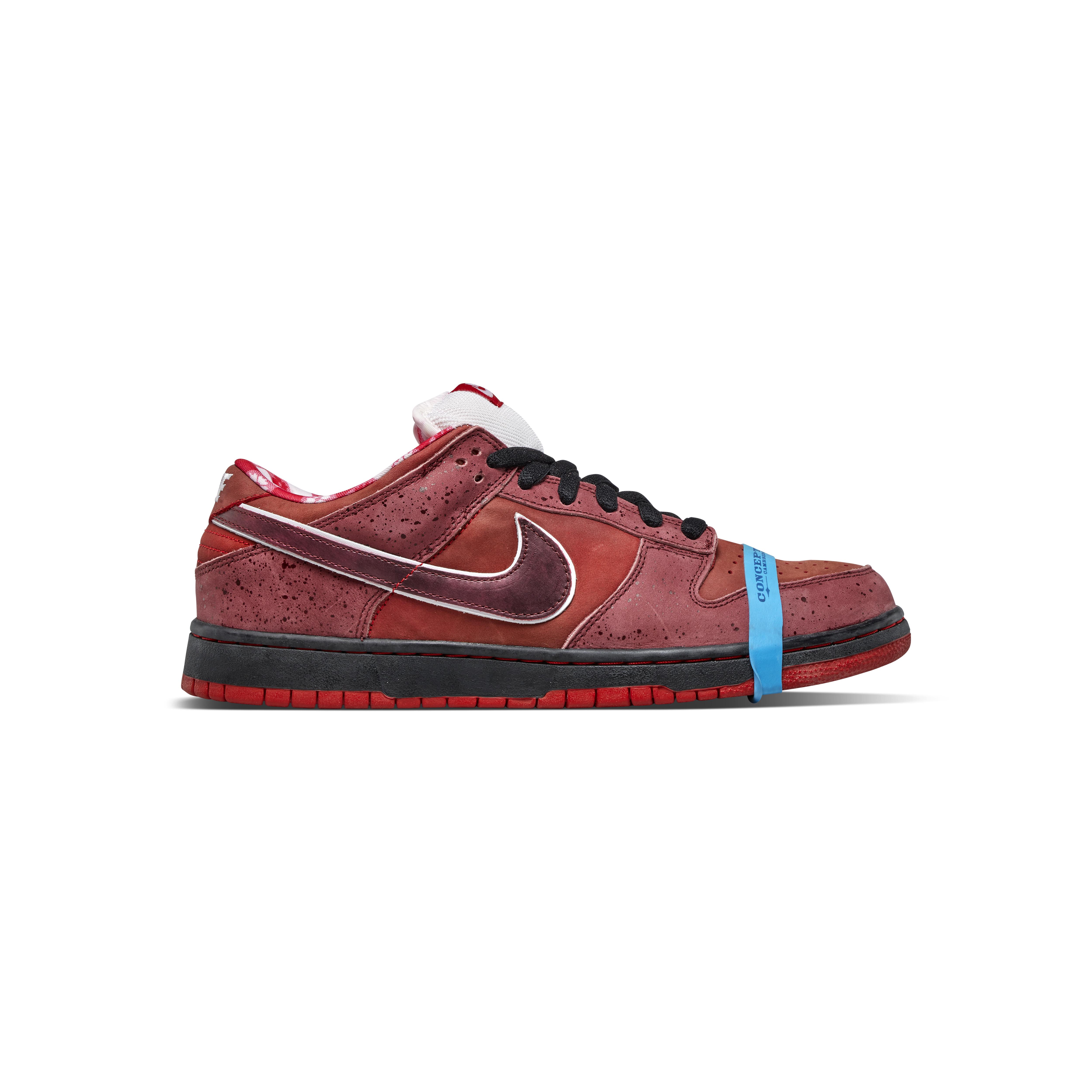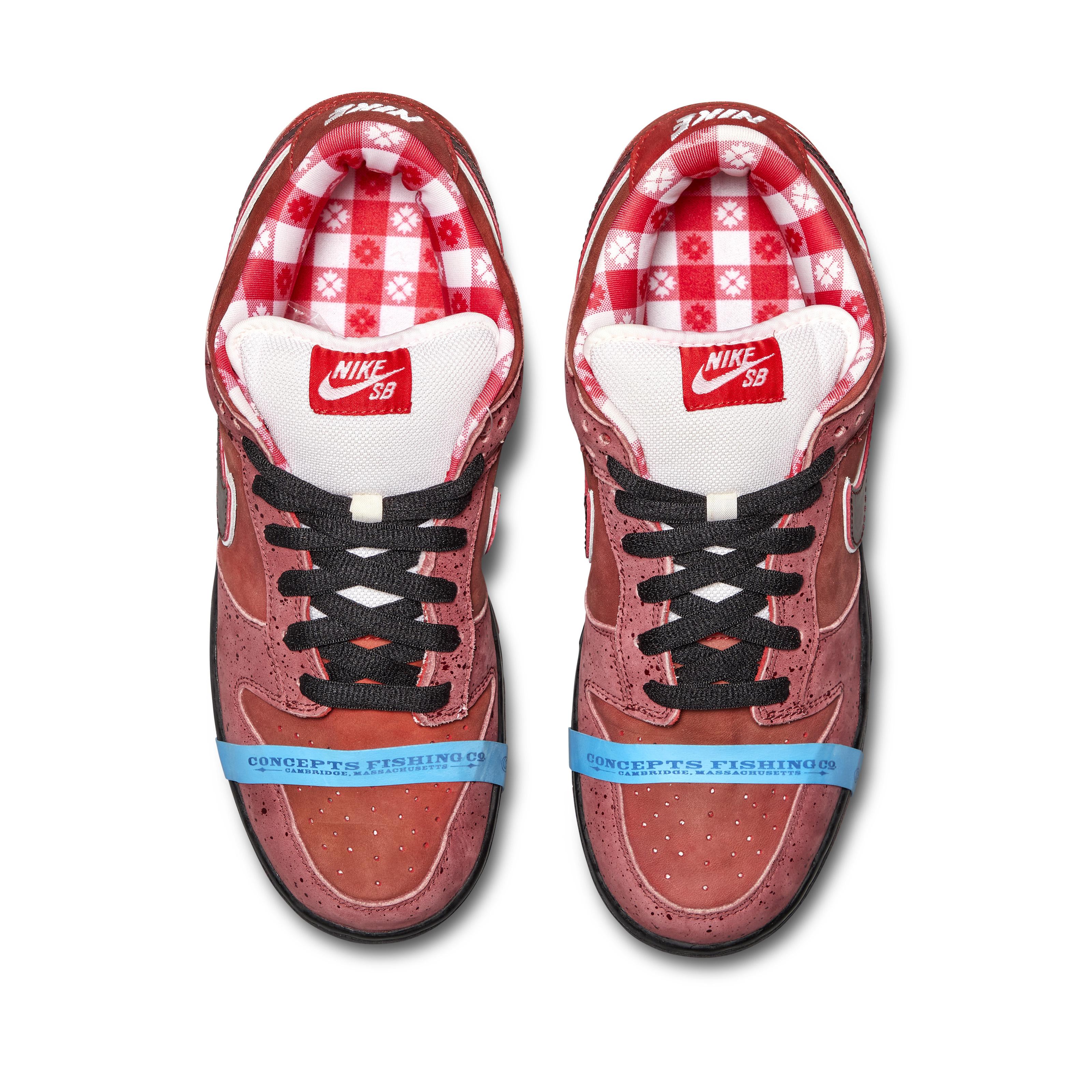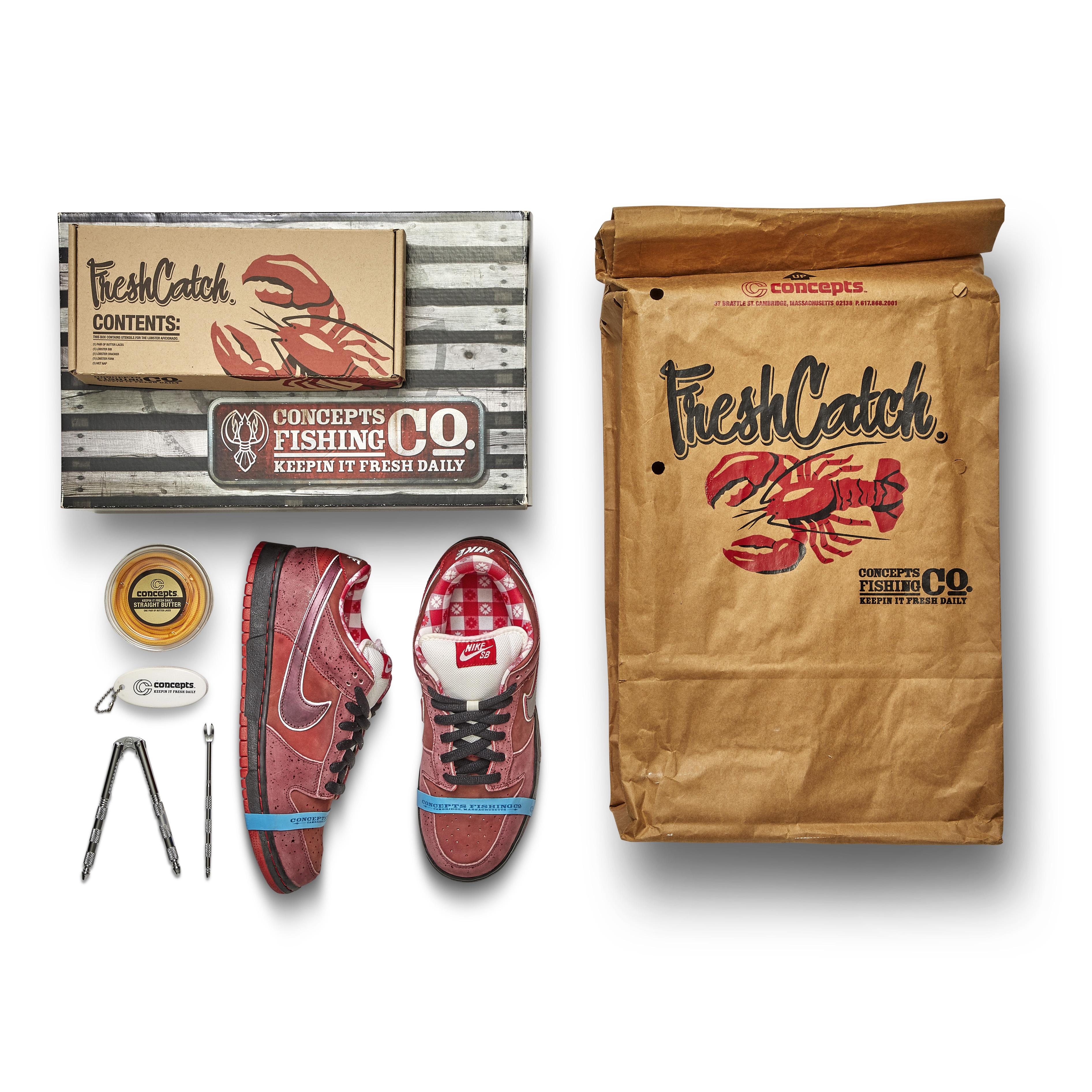 Nike and Concepts collaborated on a shoe inspired by the traditional New England lobster dinner experience. The Lobster Dunk series remains one Nike’s most iconic to date. Originally released in 1985 for basketball, Dunks popularity with skateboarders led to the launch of the SB line in 2002, featuring additional padding and Zoom Air soles.The original Lobster style designed in collaboration with the pioneering Boston-based streetwear company Concepts (CNCPTS), one of the first stores in the country to carry the Dunk SB line.Tonal reds with speckled shell-like overlay, leather Swoosh, bib-inspired interior lining, and rubber claw band at toe.Special brown paper bag packaging.Includes two shoeboxes and one accessory box containing lobster cracker, bib and extra pair of butter-inspired laces.Labeled size 11’lbs’.Style Number: 313170Color Code: 661This piece is final sale and not eligible for return.