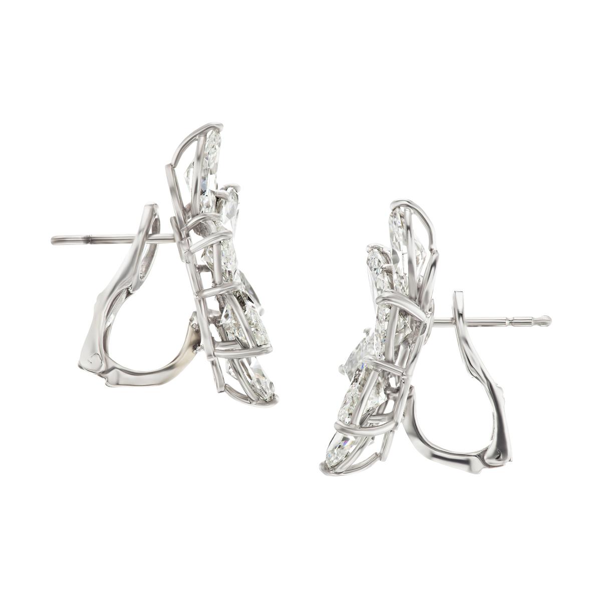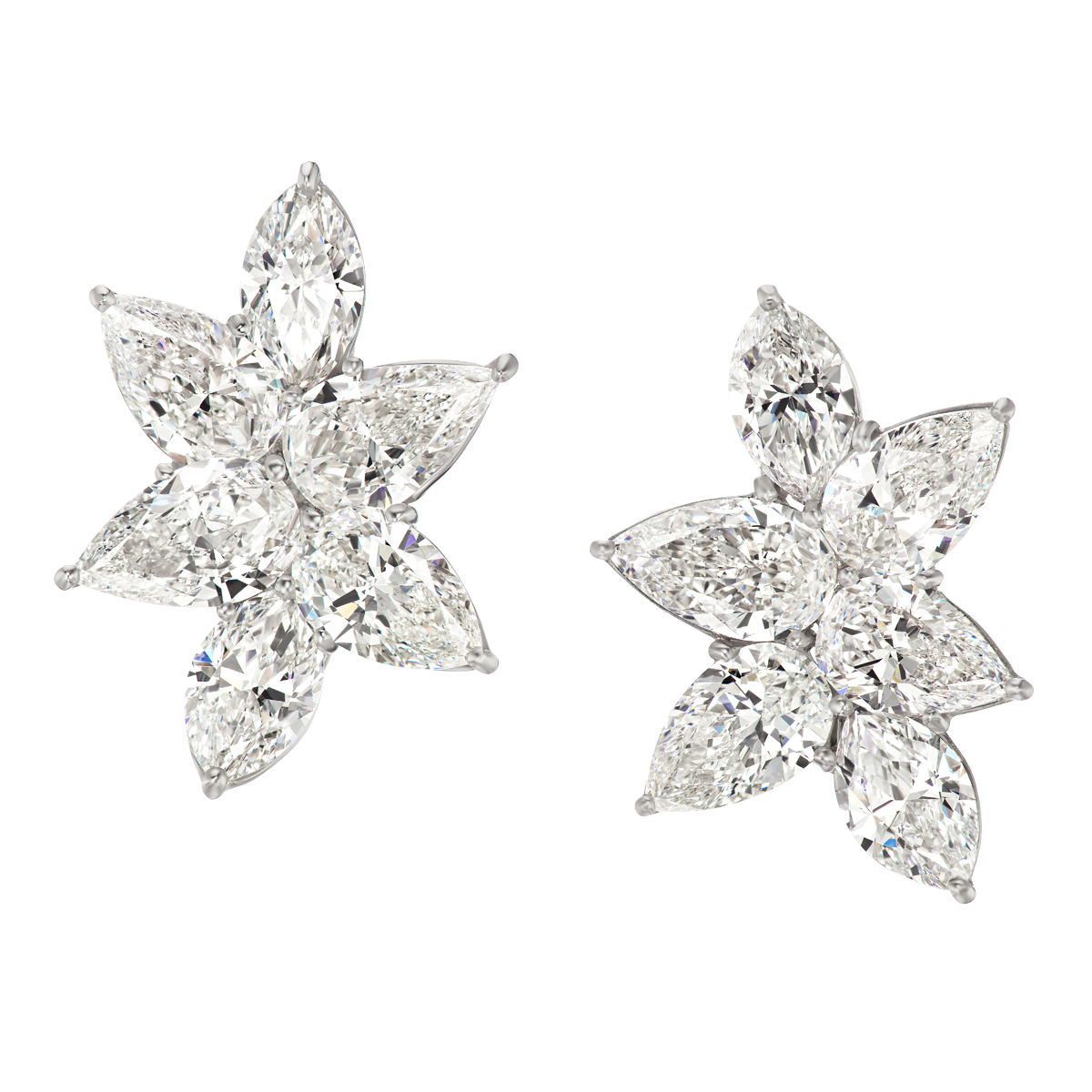 Of cluster design set with eight pear-shaped diamonds and four marquise-shaped diamonds. Diamonds weighing 11.49 caratsLength 1 inchPlatinumFitted with postsAccompanied by 12 GIA reports stating that the diamonds are E-G color, VS1-VS2 clarity.(Please contact the Jewelry department for individual certificates.)