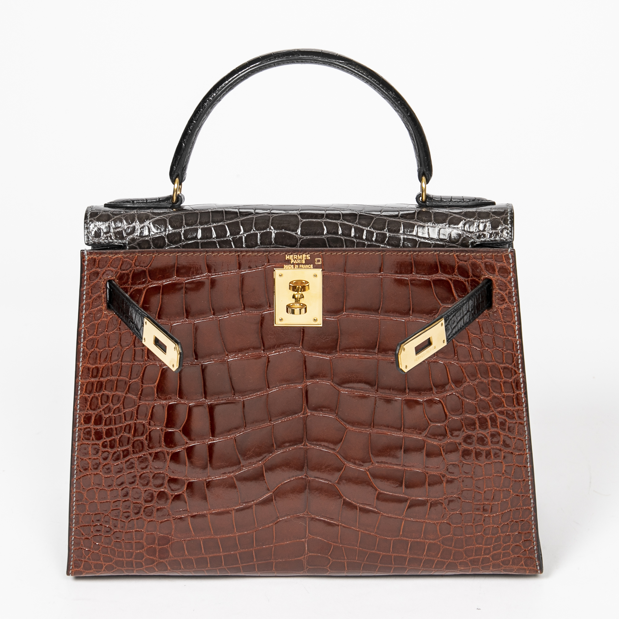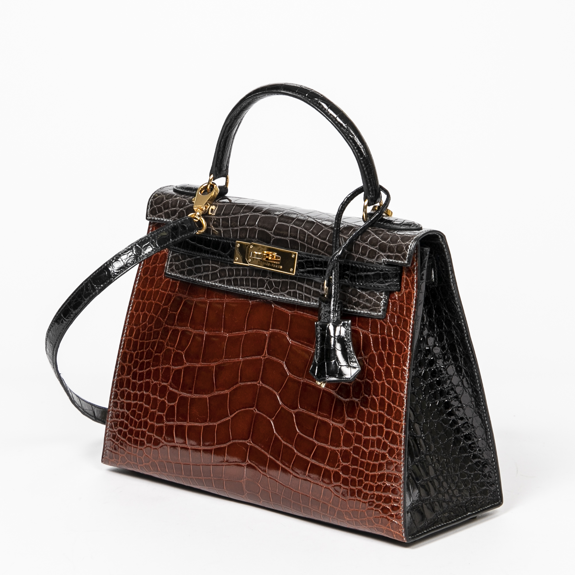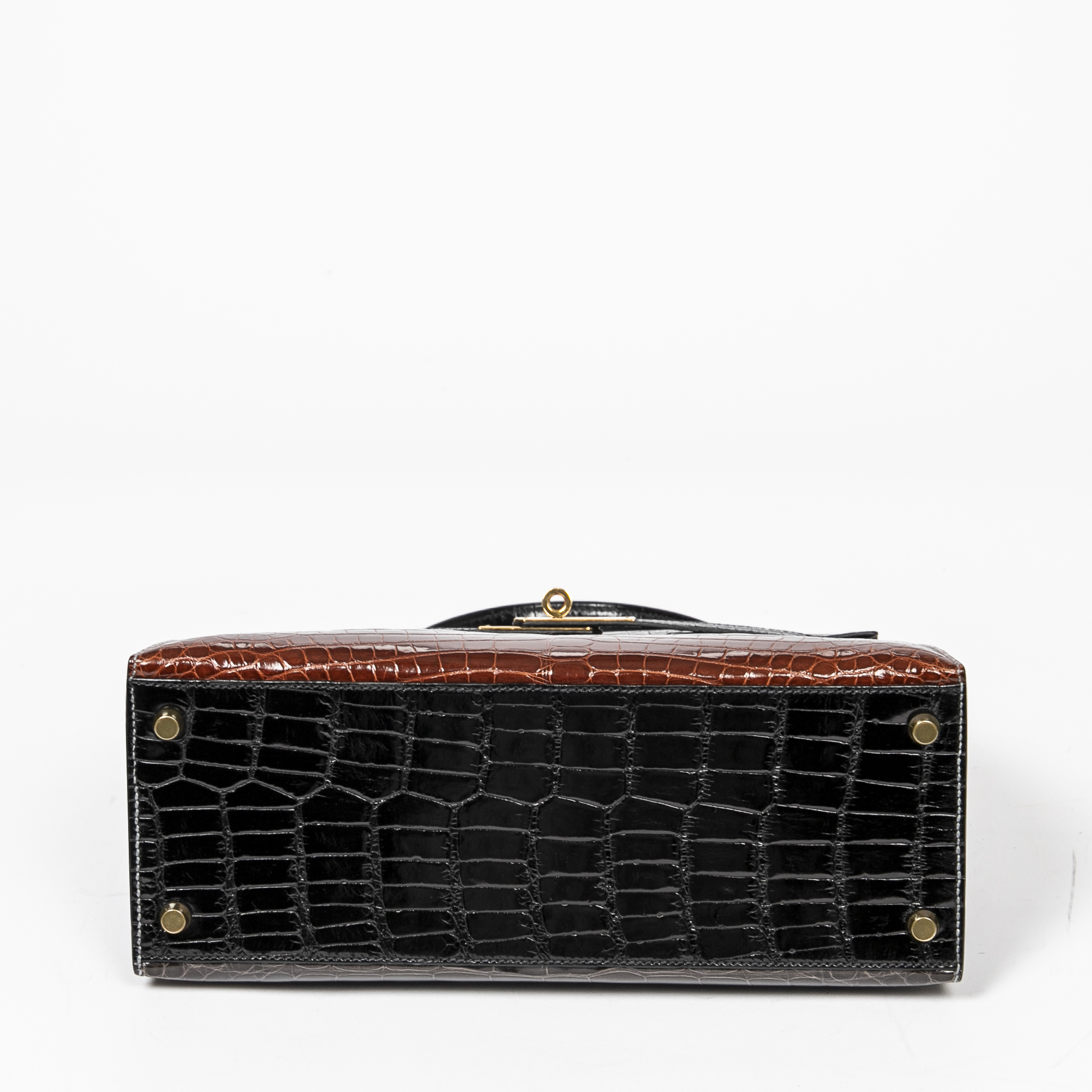 Hermès Black, Gris Foncé and Miel Sellier Kelly 28cm in Tricolor Alligator with Gold Tone Hardware, 1992Includes strap, keys in clochette, lock and dustbag.
