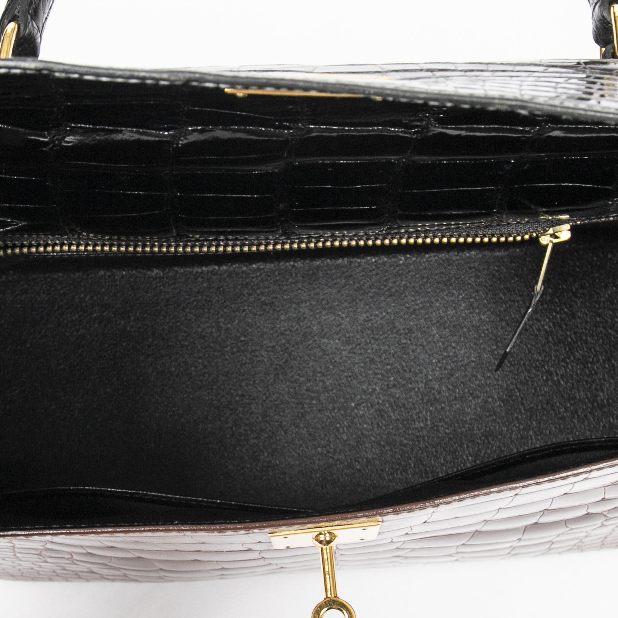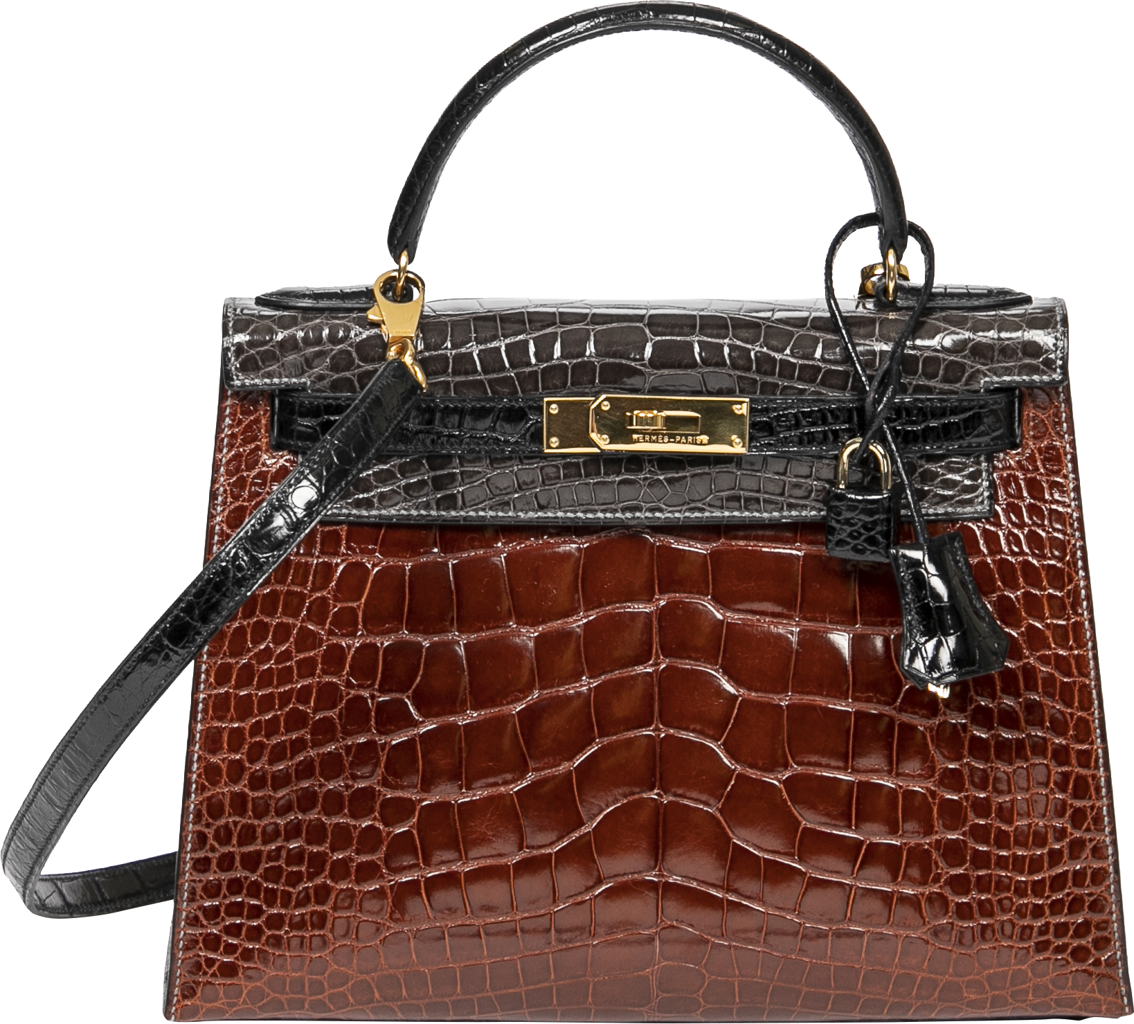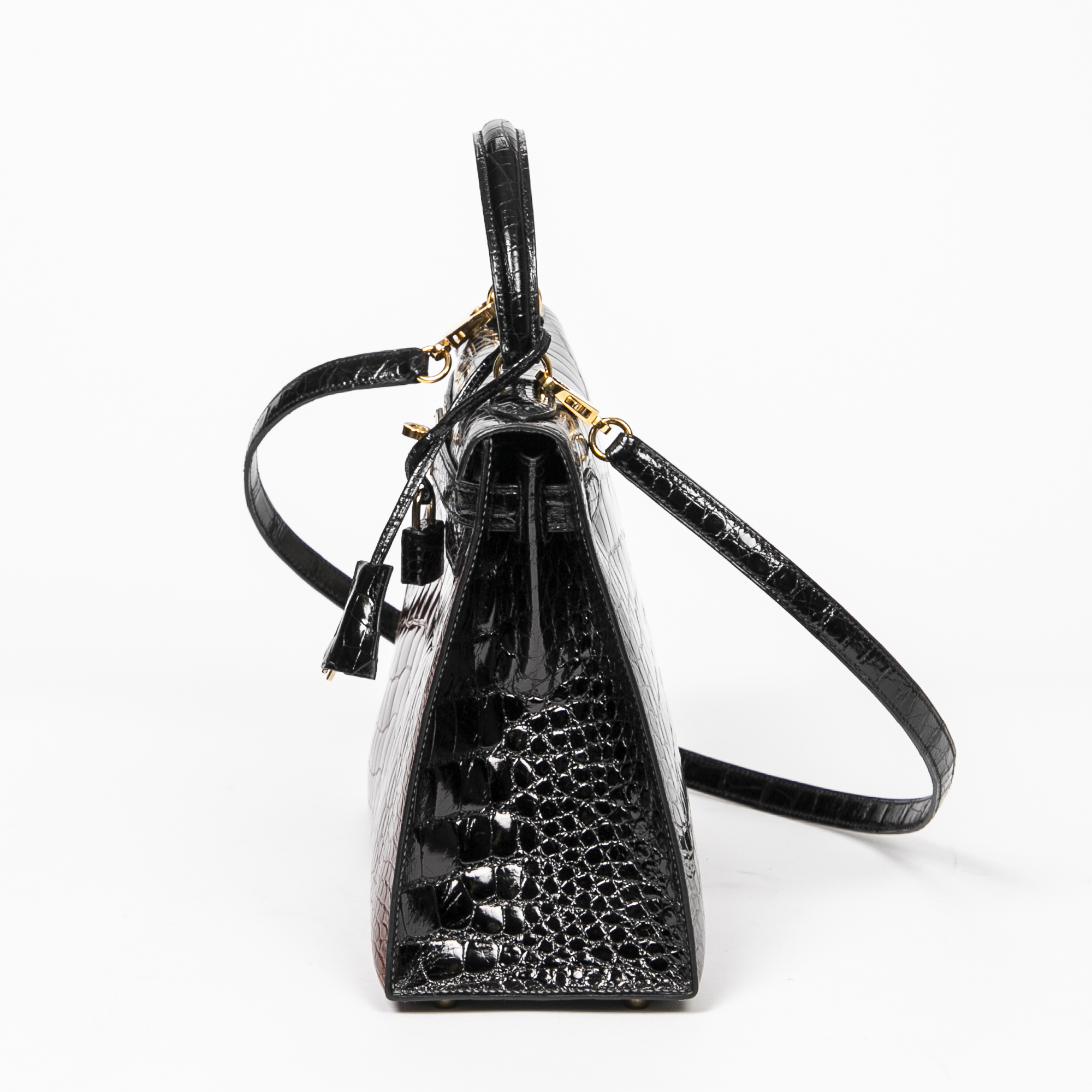 Hermès Black, Gris Foncé and Miel Sellier Kelly 28cm in Tricolor Alligator with Gold Tone Hardware, 1992Includes strap, keys in clochette, lock and dustbag.