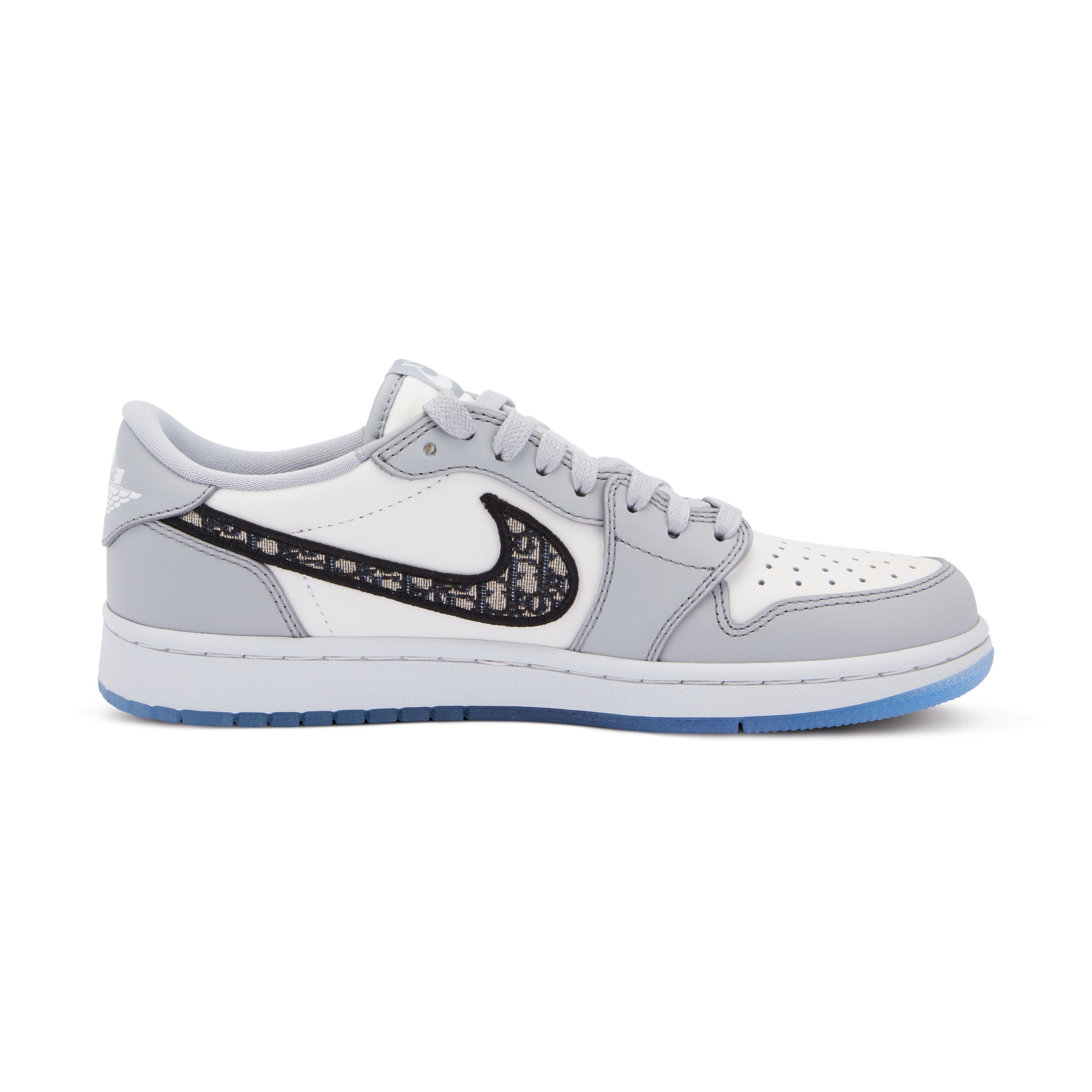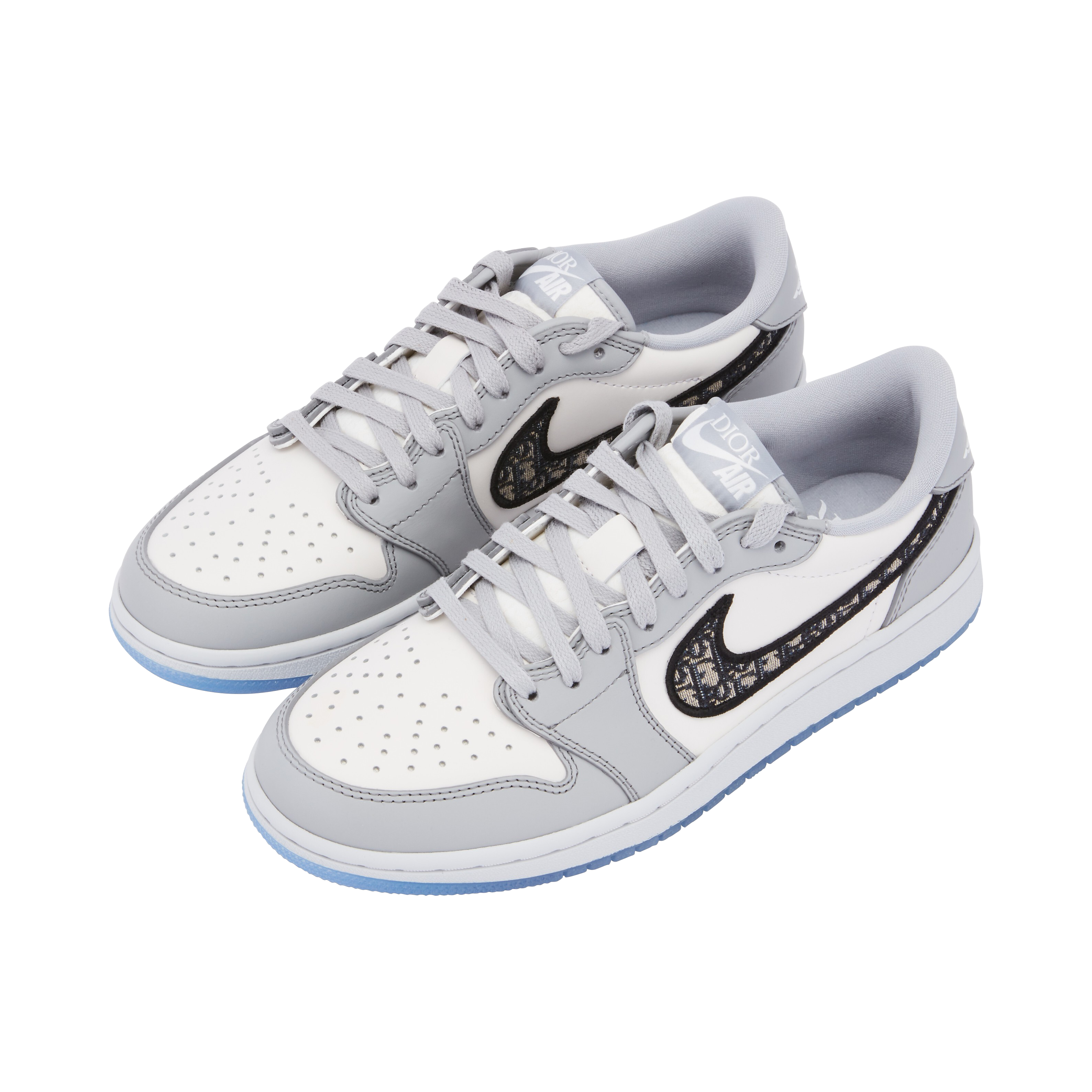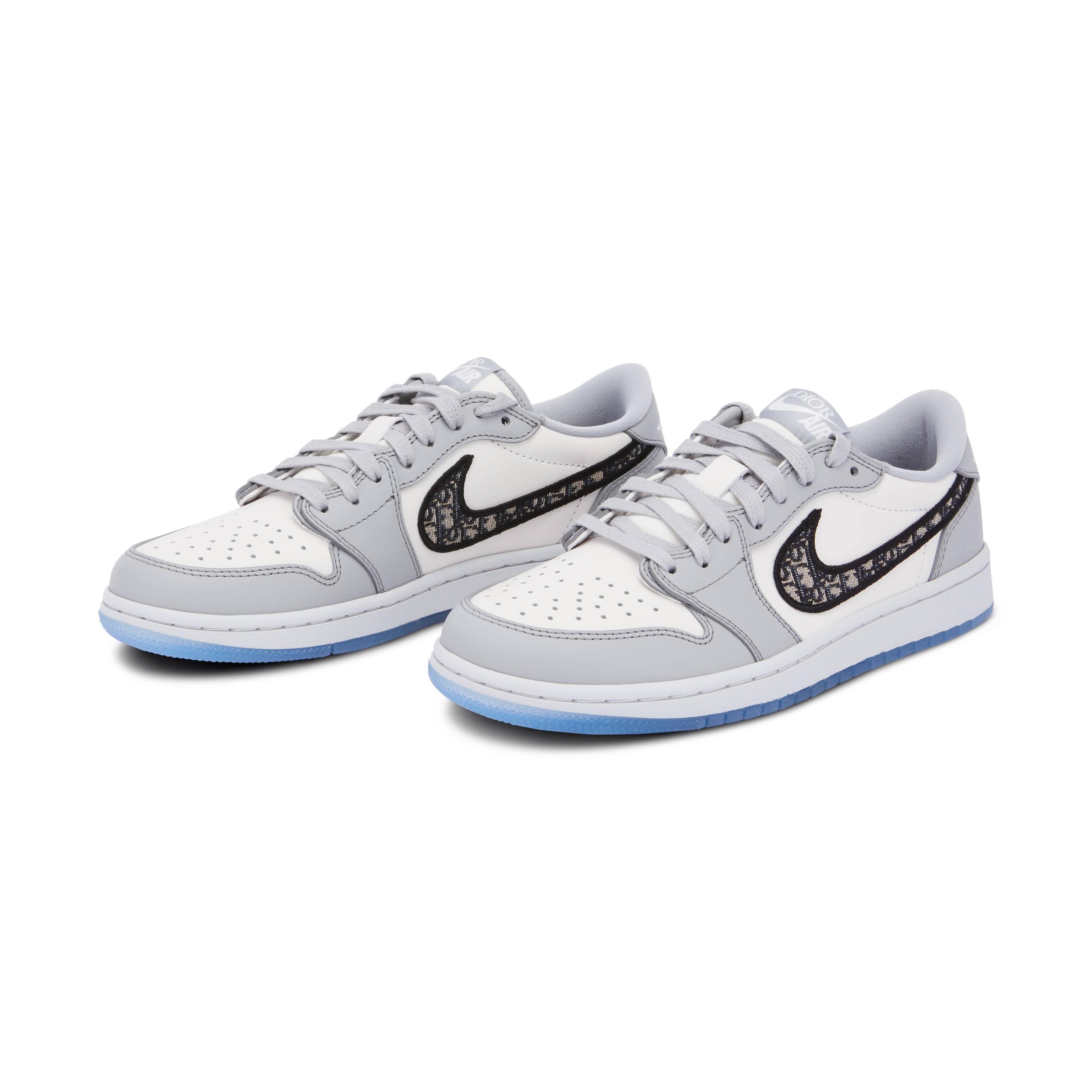 Aligning with the 35th Anniversary of the Air Jordan, the Dior x Air Jordan partnership was first unveiled at the Dior Men’s Pre-Fall 2020 runway show in Miami. The sneaker world erupted as it marked the first time a Parisian couture house partnered with the iconic Air Jordan basketball brand, blending high end streetwear with luxury fashion. Kim Jones, the artistic director of Dior Men, said, “I love mixing together different worlds, different ideas - Jordan Brand and Dior are both emblematic of absolute excellence in their fields.”Limited to only 8500 pairs of Lows and 4700 pairs of Highs, both styles feature the Dior Gray color palette, an homage to one of Christian Dior’s most-loved hues. The shoes were handcrafted in Italy from calfskin leather and accented with Dior’s signature Oblique monogram jacquard Swooshes. Dior and Air Jordan’s iconic branding are mixed on the Wings logo, tongue labels and outsole graphics. Dior Gray and white calfskin handcrafted leather upper.Dior Oblique jacquard Swoosh.‘Air Dior’ modified Wings logo and ‘Dior Air’ tongue labels.Hand-painted edges. Printed logos under translucent ice blue outsoles. Made in Italy.Style number: CN8608Color code: 002This item is final sale and not eligible for return.